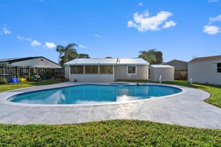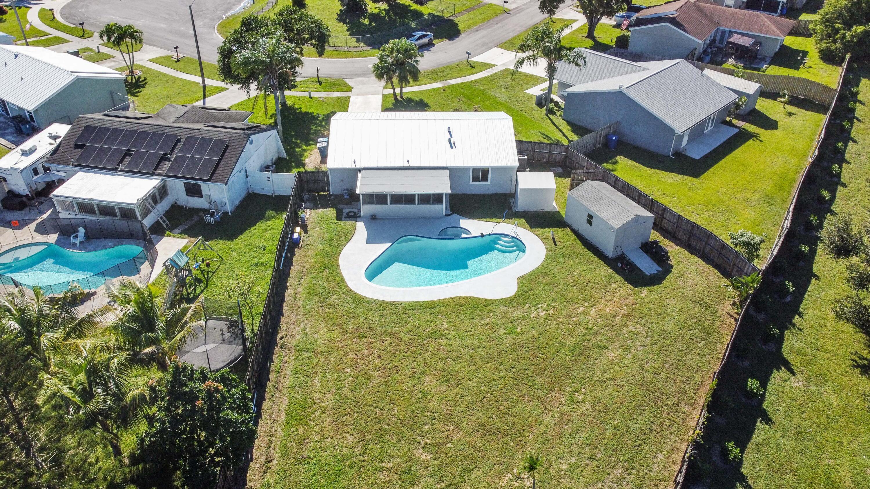 Prepare to move right into your dream home, a fantastic 3-bedroom, 2-bath single-family house boasting what is arguably the best & biggest lot in all of Counterpoint Estates! This charming residence is a true peaceful retreat, set on a private, fully fenced 0.28-acre lot that backs directly up to a canal, promising serene greenspace views. The entire interior has been beautifully refreshed, featuring new laminate flooring in the main living area (2025) and durable tile flooring in the bedrooms.The functional layout is designed for modern living, featuring a kitchen with beautiful granite countertops, a full backsplash, and well-appointed cabinetry. There's a private home office and a separate storage area, maximizing the home's utility. Essential systems offer modern efficiency: the A/C was replaced in 2021 and the Water Heater in 2023. For added convenience and value, the property includes two practical storage sheds and an exterior yard light. Step outside to embrace the Florida lifestyle in your private sanctuary. The covered, screened patio overlooks a beautiful pool, offering the perfect space for relaxing with a coffee or cocktail while taking in the tranquil greenspace views. The Roof was replaced in 2025, securing your investment for years to come. Best of all, Counterpoint Estates is a great community with NO HOA, offering you the ultimate freedom and low-cost living.