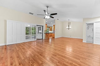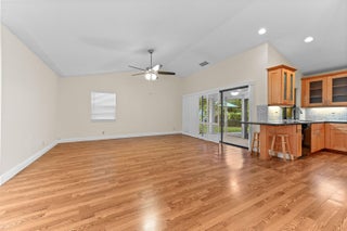 Welcome to this charming 1-story home in Ramblewood Villas, offering 1,456 sq. ft. of comfortable living space on a beautiful waterfront lot. This residence features 3 bedrooms, 2 bathrooms, and a 1-car attached garage.Step through the double main doors that fill the entryway with natural daylight and into a bright, open living area with laminated flooring throughout. The kitchen is designed for both style and function, featuring granite countertops, high-end appliances, and ample cabinetry. The primary bedroom offers a relaxing retreat, featuring a large walk-in closet and an upgraded en-suite bathroom with a walk-in shower and dual vanities. Additional highlights include a full-size washer and dryer conveniently located in the garage.Enjoy Florida living at its best in the screened and covered patio, perfect for entertaining, or unwind in the open backyard with a serene canal view. This delightful home combines comfort, convenience, and a peaceful setting, a must-see in Ramblewood Villas!