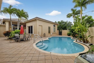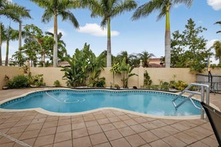 This immaculately kept and unique home is just waiting for you! Brand new roof! Very rare courtyard style residence with custom built and expanded guest house. You enter through a double door entry into a private and tropical courtyard area with free-form pool. The main house features 3 bedrooms , 3 baths with a spacious and open floorplan, formal living, dining and family rooms, indoor utility with extra cabinetry and a laundry tub and a 3 car garage. 12' ceilings throughout, updated appliances, split bedrooms, unique master with private entry and giant 12 x 10 walk in closet and nicely appointed bath with dual vanities, roman tub and separate shower. The guest house has a private entrance living room and kitchen w all appliances, 2 spacious brs, bath & washer/dryer. Gated community w