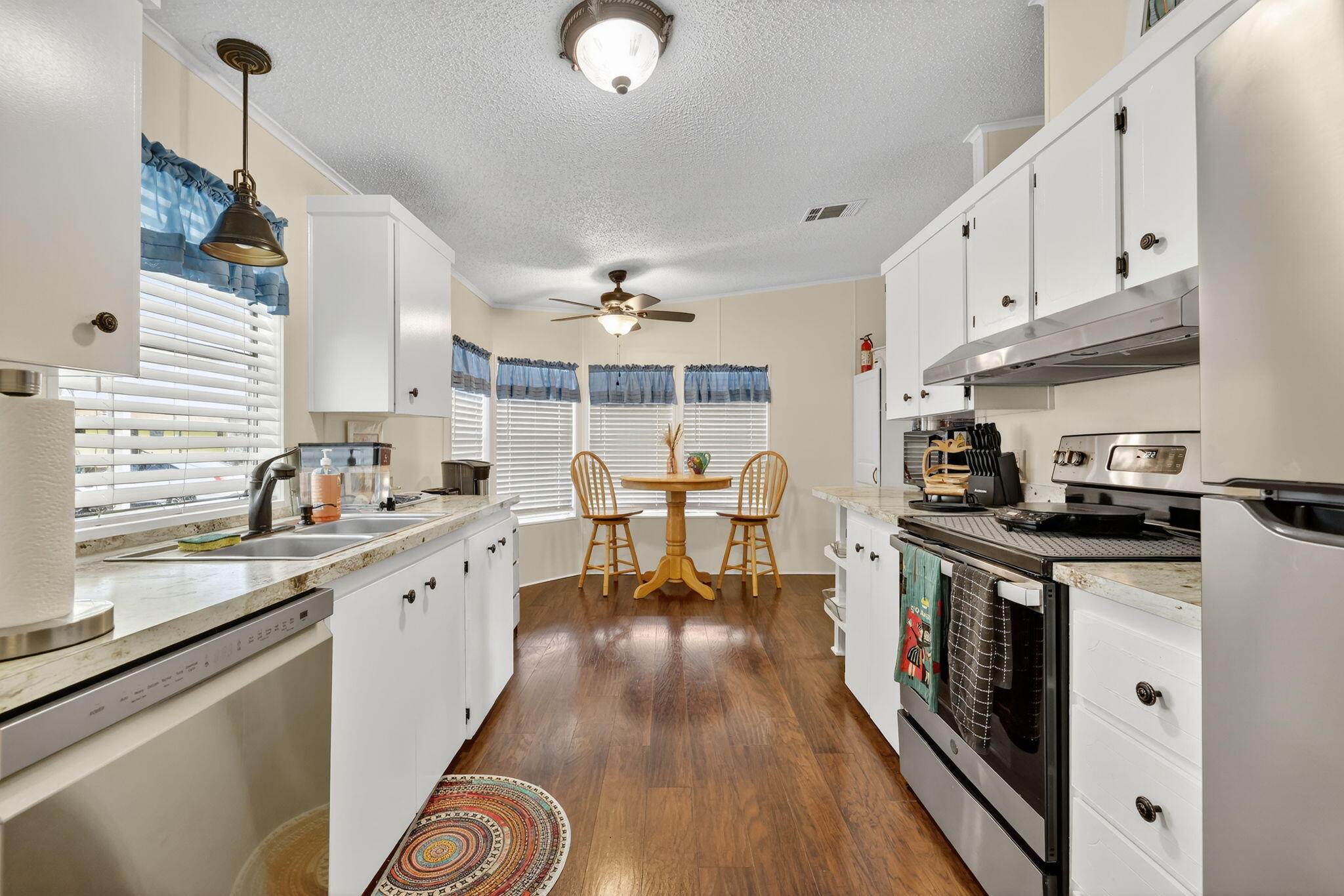 NO LAND LEASE! Beautiful property in the highly desirable 55+ community of LA BUONA VITA. This property features newer appliances, new vanities in both bathrooms and laminate flooring throughout. New front and rear doors, new tie downs and PVC piping. A/C is only two years old. Fenced in backyard with 14x8 shed and big screened in lanai. Low monthly maintenance fee of $197 a month which includes high speed internet, cable TV, year round heated pool, club house activities and all user amenities, trash pickup, maintenance of common grounds and on site management. Boat and RV storage available as well. Don't miss out as this property won't be available long!
