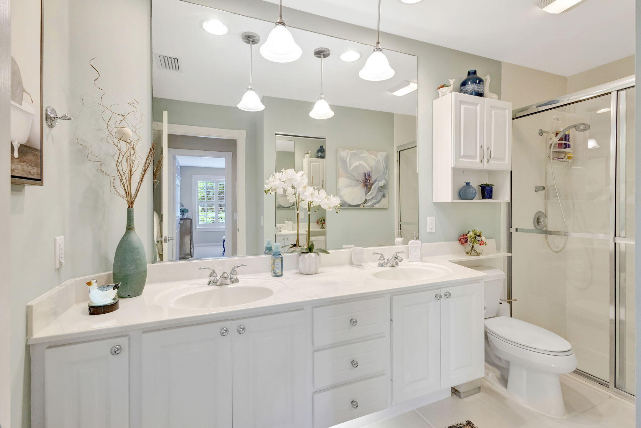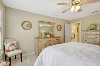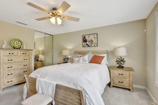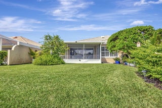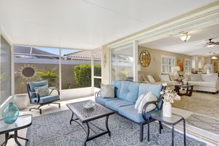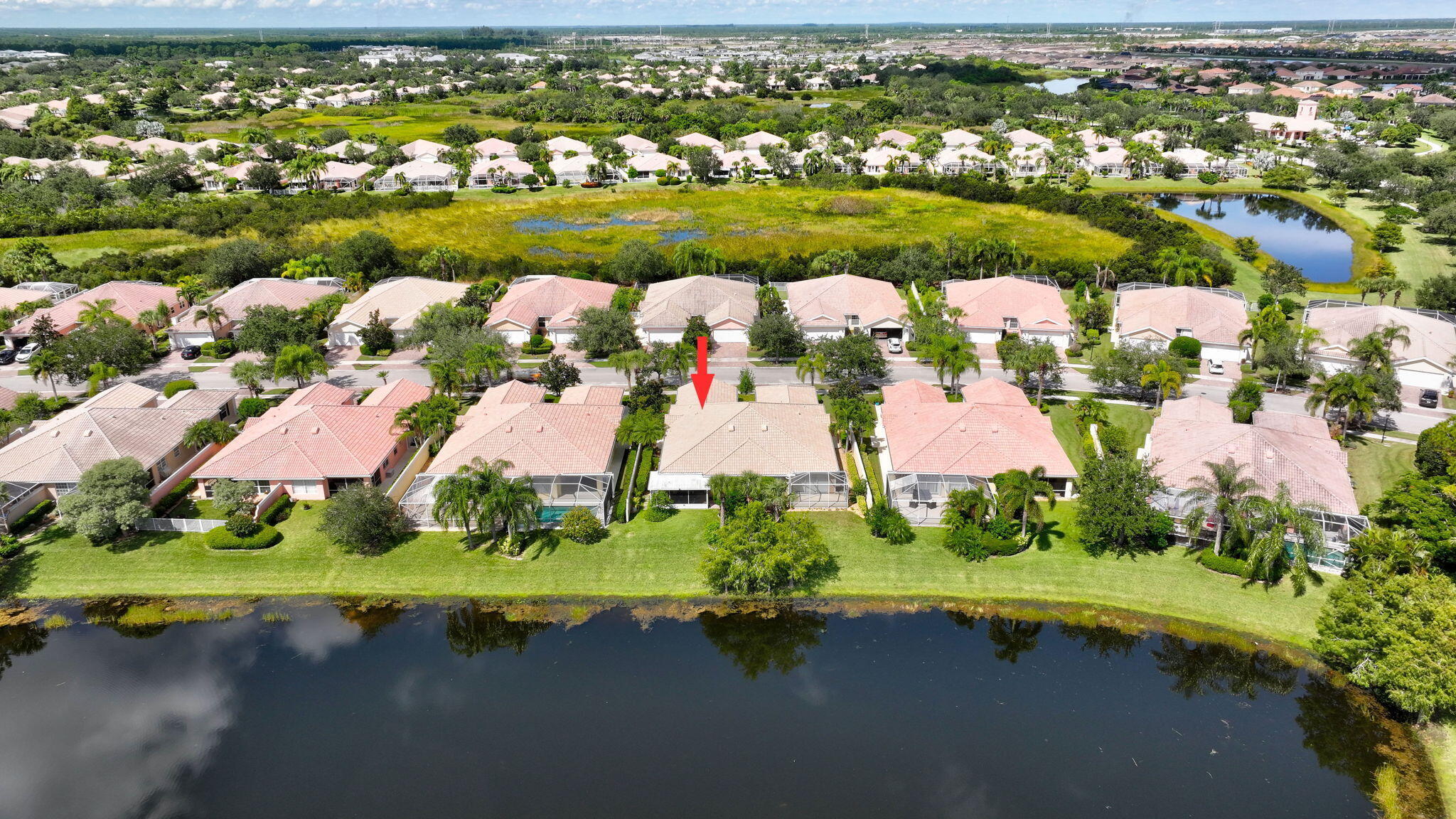 Move right in and embrace the Tradition lifestyle! This beautifully maintained and tastefully updated 2-bed, 2-bath extended villa combines comfort, style, and convenience--all just a short stroll from Tradition Square's vibrant shopping, dining, and parks. Both bedrooms are generously sized, each with ensuite baths, walk-in closets, and a smart split layout that ensures privacy for owners and guests. The updated kitchen serves as the heart of the home, featuring beautiful granite countertops, a sleek tile backsplash, and a breakfast bar that opens seamlessly to the light-filled living and dining areas--perfect for both everyday living and entertaining. Notable upgrades include custom landscaping, plantation shutters, a mix of tile, laminate, and carpet flooring, and a spacious laundry roomwith abundant cabinetry and stylish granite countertops. Step outside to your private screened patio and savor tranquil views of the sparkling lake, often visited by ducks, egrets, and herons, a serene backdrop for morning coffee or evening relaxation. For added peace of mind, the AC was replaced in August 2025, and a French Drain system surrounds the property to protect against excess water. The HOA provides a wide range of amenities in the monthly fees, including full landscaping and irrigation, exterior villa painting, clubhouse access, 24-hour manned gate, cable, internet, and home security. With all the essentials of low-maintenance living taken care of, you'll have more time to enjoy everything Tradition has to offer. This move-in-ready villa truly checks every box; schedule your showing today!