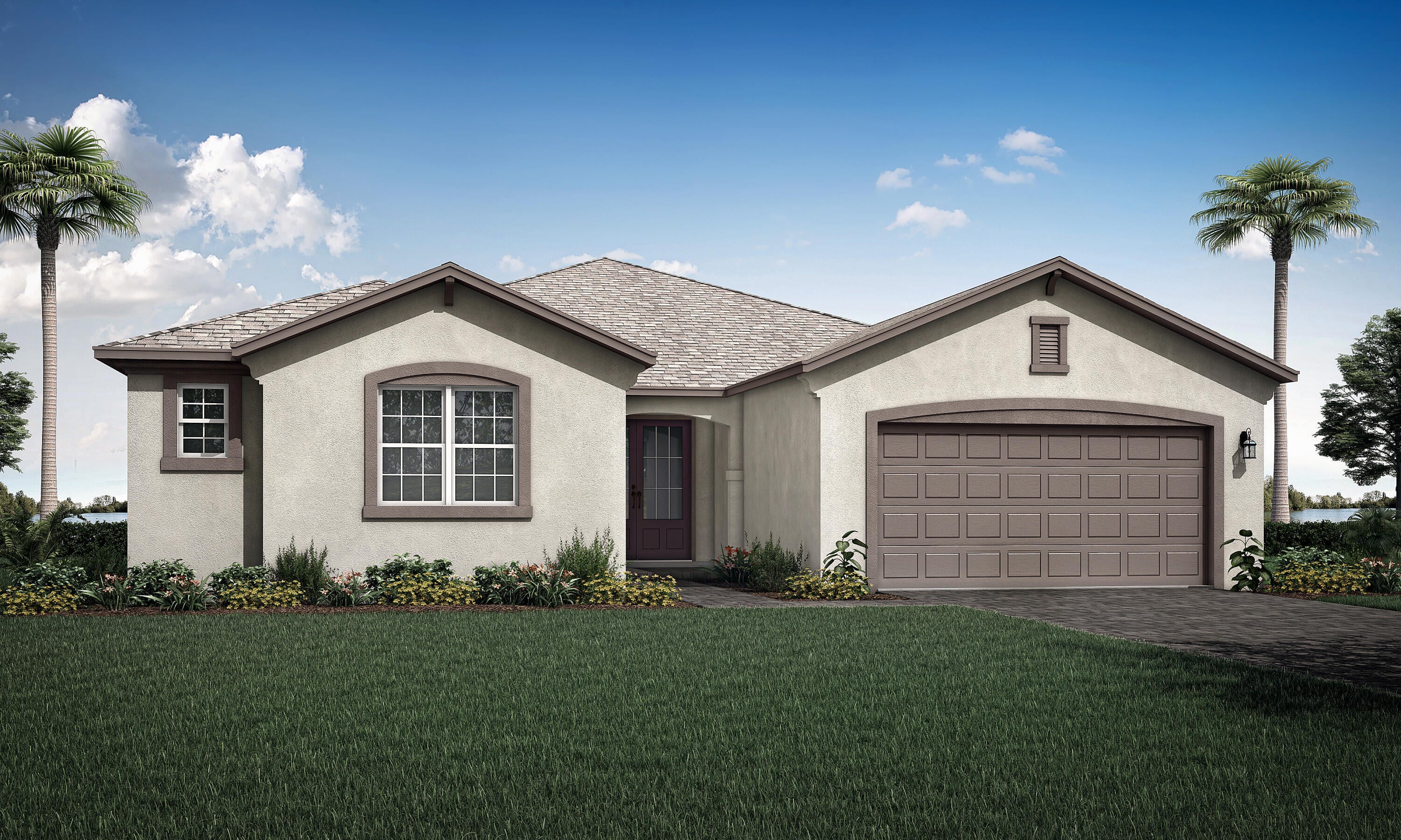 The Biscayne Bay is a 2,750 sq. ft. 1-story home that offers 4 bedrooms, 2.5 baths and a 2-car garage. This thoughtfully designed gem greets you with peek a boo windows as you approach the font door and the welcoming foyer greets you with the flex room and powder room just off to the side. The spacious kitchen offers generous cabinet space and countertops with an island breakfast bar. The kitchen overlooks the Great Room and dining area. A sliding glass door in the Great Room leads to the covered lanai. The three secondary bedrooms share a hall bath with double sinks along with the laundry room conveniently located nearby. The owner's suite is a relaxing retreat with a private bath and dual walk-in closets.