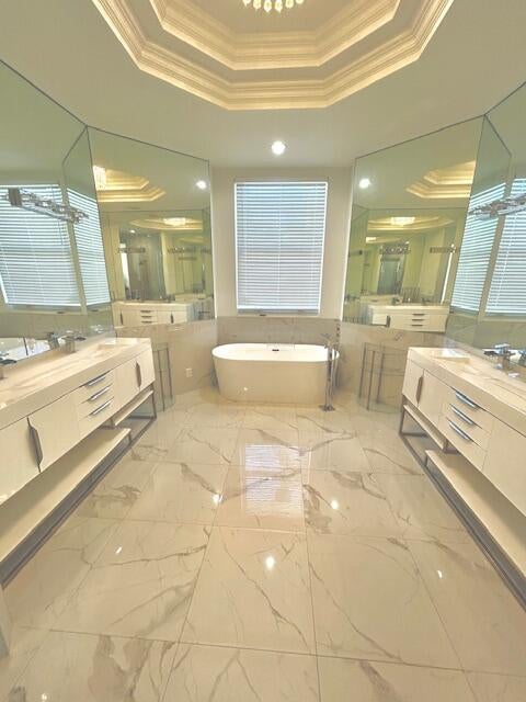 Modern and gorgeous home now available in Boca Raton. 4 bedroom and a den and 3.5 baths ranch with a private screened enclosure, pool and hot tub in popular Crystal Pointe in Boca Falls subdivision. This is a secured manned gated community with 2 entrances. Freshly painted inside and outside with many updates throughout including updated baths. Kitchen has many upgrades including quartzite countertops, wolf double ovens and more. Crown molding throughout and decorator finishes. Central vacuum system. Many walk in closets throughout including 2 in the master bedroom. This is an ideal split floor plan. There is beautiful marble on the patio. This is a premier resort style community with pickleball, tennis, pool, clubhouse, fitness center, basketball, jog and walking paths for miles.A+ Schools nearby! Waters Edge elementary, Loggers Run Middle and Boca West High School nearby. N South County Park with everything from dog parks, sports fields. volleyballs courts, water park, amphitheatre,and more. Cable, internet is included in the rent. Only minutes from premier shopping and restaurants.