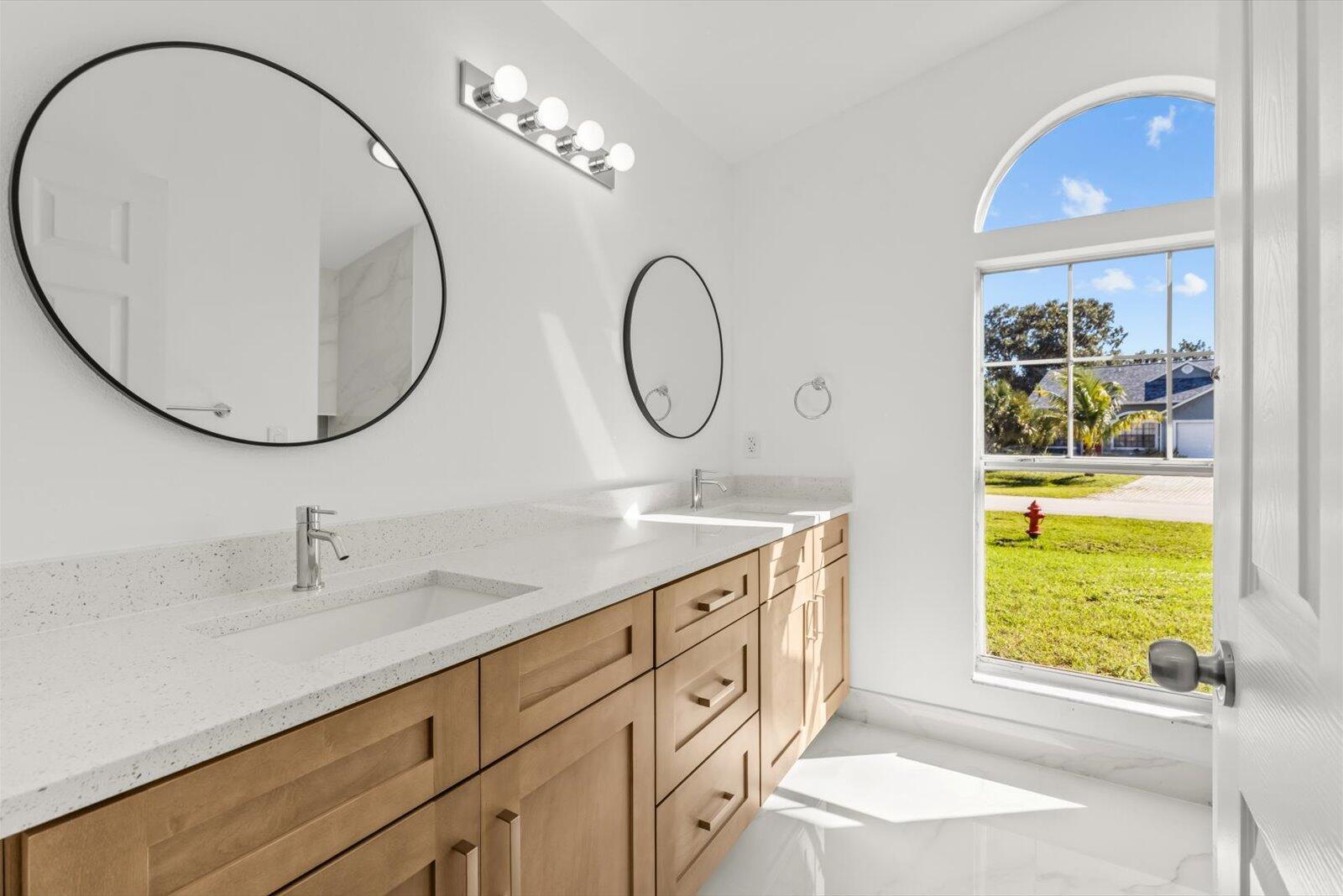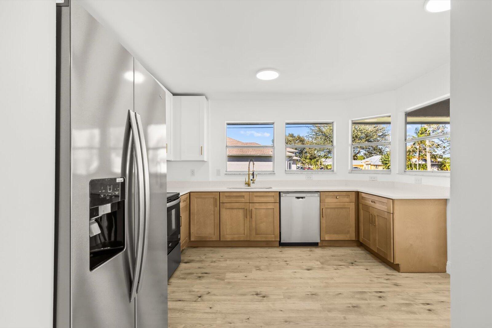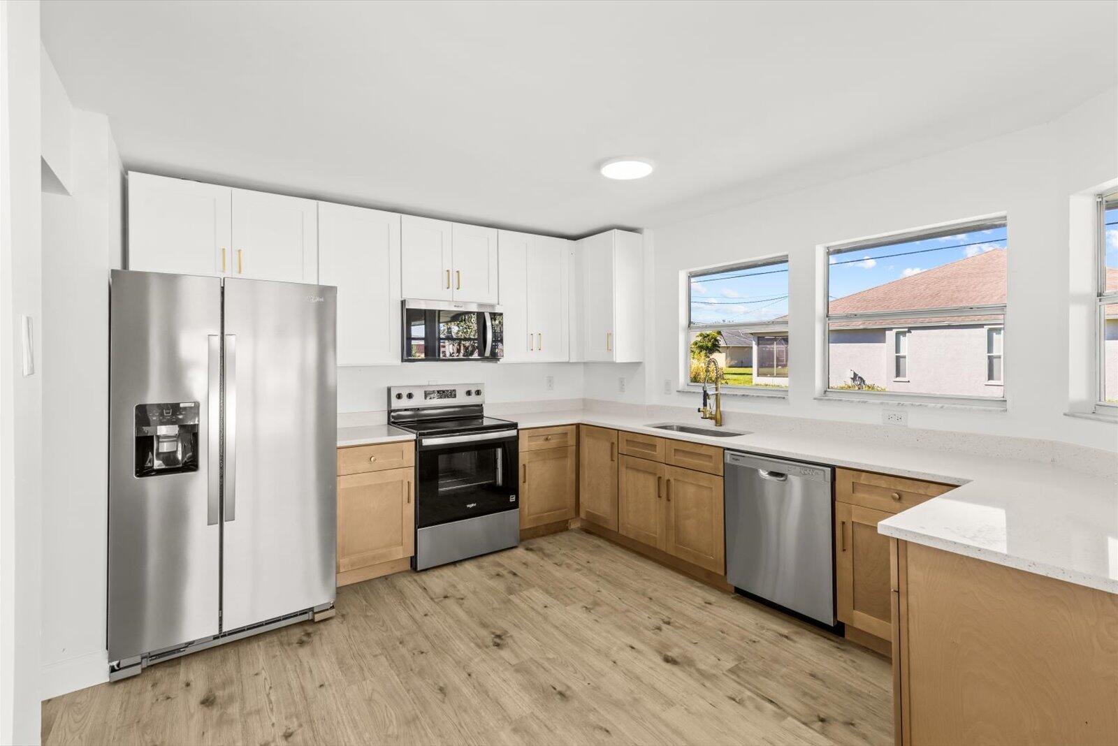 Showings must be scheduled with Showingtime or Sentri. Exquisite CBS 3-bedroom, 2-bathroom residence, fully renovated in 2025. The gourmet kitchen boasts luminous Calacatta quartz countertops, bespoke soft-close shaker cabinetry, and premium high-end finishes, designed to inspire culinary excellence. Luxurious spa-inspired bathrooms feature sophisticated tile work, free standing tub, gorgeous vanities, and contemporary fixtures, elevating daily rituals to a serene escape. Impeccable waterproof laminate flooring, freshly painted interiors and exteriors, and brand-new, top-tier appliances blend style with functionality. Enjoy effortless access to I-95, premier shopping, and dining, with the freedom of no HOA restrictions. This residence seamlessly blends modern luxury with timeless comfort.