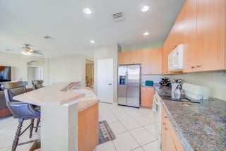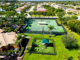 Dream lakeside home featuring 4 spacious bedrooms and 3 bathrooms within 2,406 square feet! As you enter, the charming front porch with pavers and a brand new front door welcomes you into a split bedroom floor plan adorned with tile floors on a diagonal, neutral colors and knockdown textured walls. The open-style kitchen overlooks the family room and boasts a convenient snack bar alongside granite countertops. The master bedroom offers plush carpeting, an ensuite bathroom with dual vanities, a shower with glass doors, and a separate bathtub, all complemented by a huge walk-in closet.Step outside to enjoy serene lake views from the covered patio, equipped with pavers and a ceiling fan. The exterior features hurricane panels, gutters, and a large paver driveway and sidewalk, ensuring both beauty and safety. Bella Terra in a vibrant community with easy access to State Road 7 and the Florida Turnpike. You'll be near shopping centers, restaurants, and entertainment. Take advantage of fantastic amenities including basketball and tennis courts, pickleball, a playground, clubhouse, pool, spa, and picnic area. Schedule your tour today!