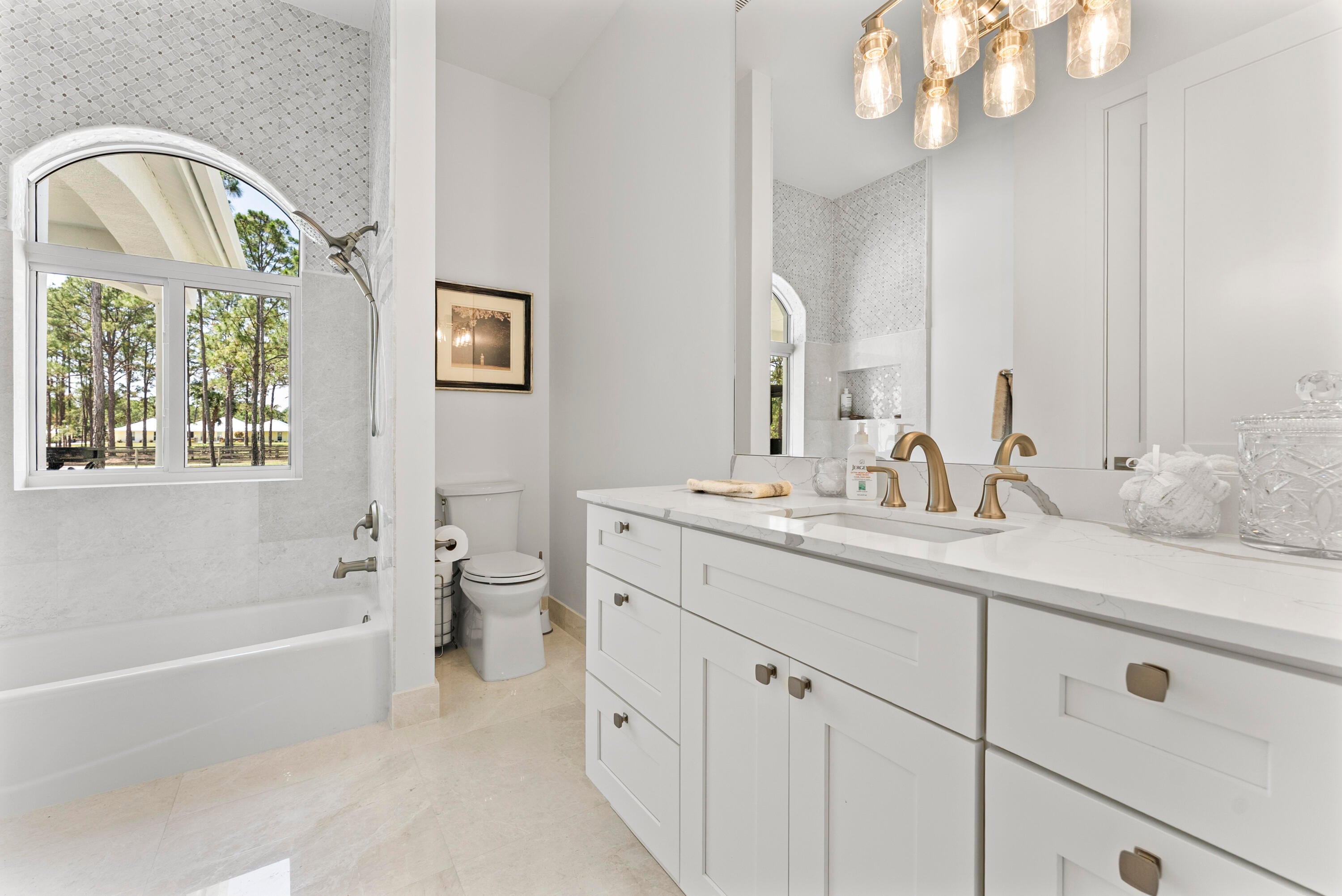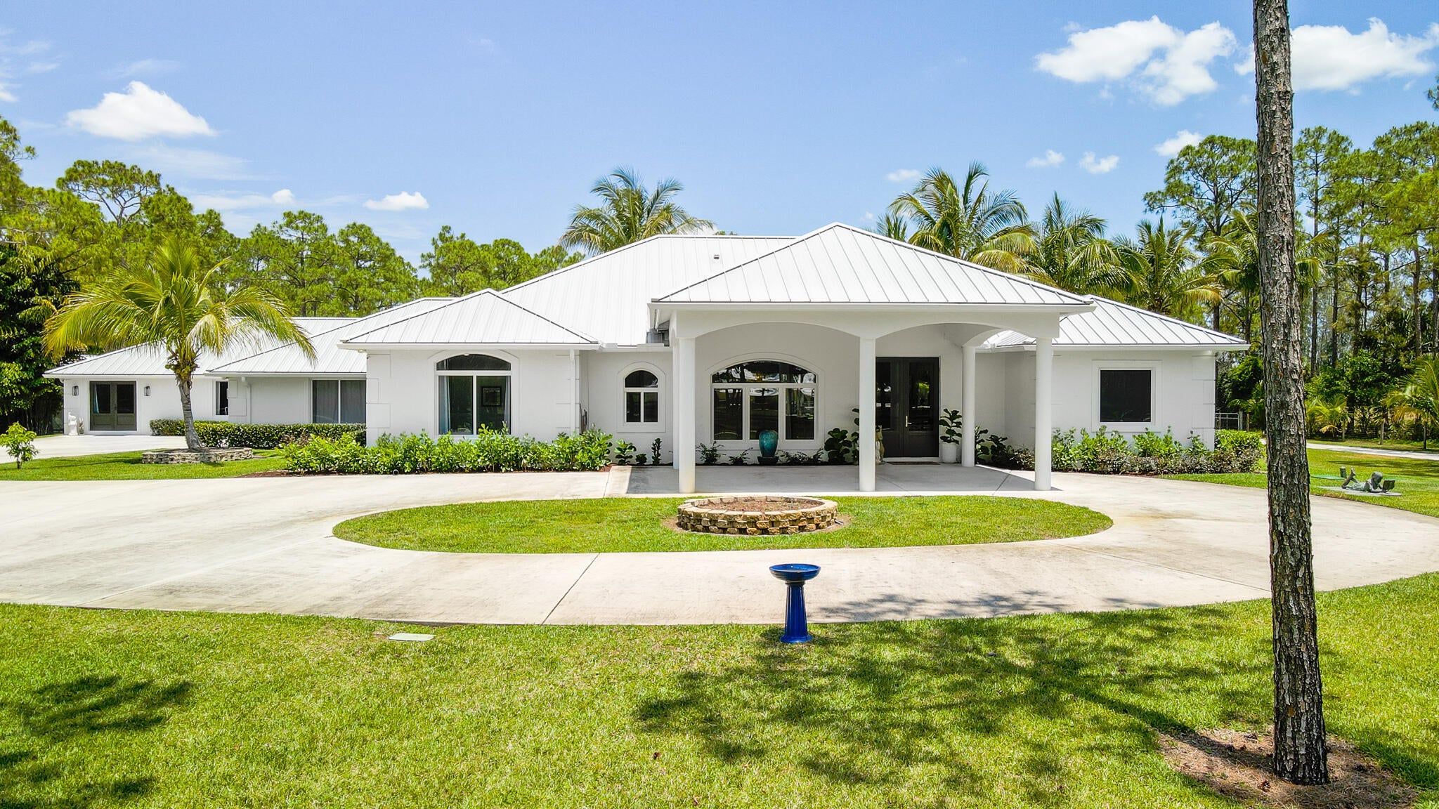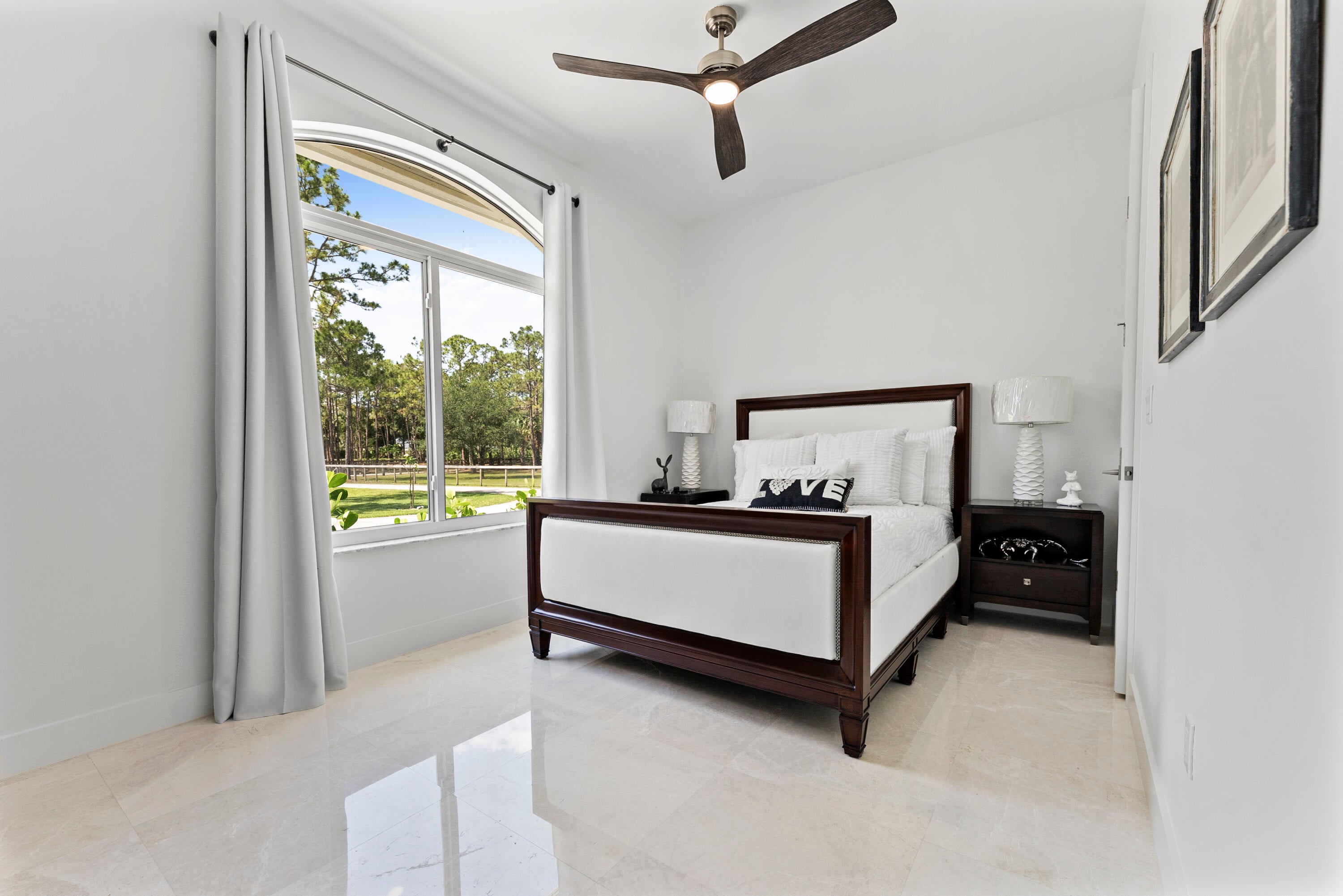 A masterclass in modern elegance and equestrian living, this completely renovated Caloosa estate blends minimalist design with exceptional function across 5 private, fully fenced, and irrigated acres. Offering 5 bedrooms, 5 bathrooms, and nearly 5,000 square feet of refined living space, every inch of this residence has been curated for effortless luxury and timeless sophistication.The residence features smooth walls and ceilings, impact glass throughout, and an abundance of natural light that highlights its modern, clean aesthetic. The designer kitchen is the heart of the home, showcasing elegant quartzite counters and backsplash, a large island, and Sub Zero refrigerator. A major highlight is the two bedroom, two bath guest house - a complete private residence with its own kitchen. The guest house also has a washer/dryer, all with the same high end finishes, and cabana bath. For equestrian enthusiasts, the property is truly exceptional. It includes two barns with six stalls, a riding arena, and manicured paddocks with a full drainage system, designed for optimal care and convenience. The barn is equipped with a fly control system, washer and dryer in the tack room, and thoughtfully planned ventilation and storage. A covered truck and trailer parking area, air-conditioned workshop building, and separate gated entry make this property as functional as it is beautiful. Recent updates include two new A/C units, new insulation and ducts throughout the main house and garage, a new drain field, water filtration system, and whole-property irrigation. New insulation and ducts throughout the main home and garage. This is acreage living without compromise, where contemporary design meets serene equestrian lifestyle. Located within the prestigious Caloosa community, residents enjoy access to over 30 miles of interior riding trails and a 32-acre horse park featuring a dressage arena, jump course, and cross-country area. Additional amenities include tennis and pickleball courts, a children's playground, basketball courts, and a private park with meeting facilities, all exclusive to Caloosa residents and their guests. Caloosa is a one-of-a-kind equestrian enclave with approximately 350 five-acre home sites, ideally positioned just 15 minutes from the Florida Turnpike, I-95, and The Gardens Mall, and 25 minutes from Downtown West Palm Beach and Palm Beach International Airport. It's a perfect blend of privacy, prestige, and accessibility,making it one of Palm Beach County's most coveted equestrian communities. With its rare combination of sleek modern design, world-class equestrian amenities, and thoughtful upgrades throughout, 14819 Broken Arrow Place offers an unparalleled opportunity to experience the best of Palm Beach Gardens' luxury acreage living.