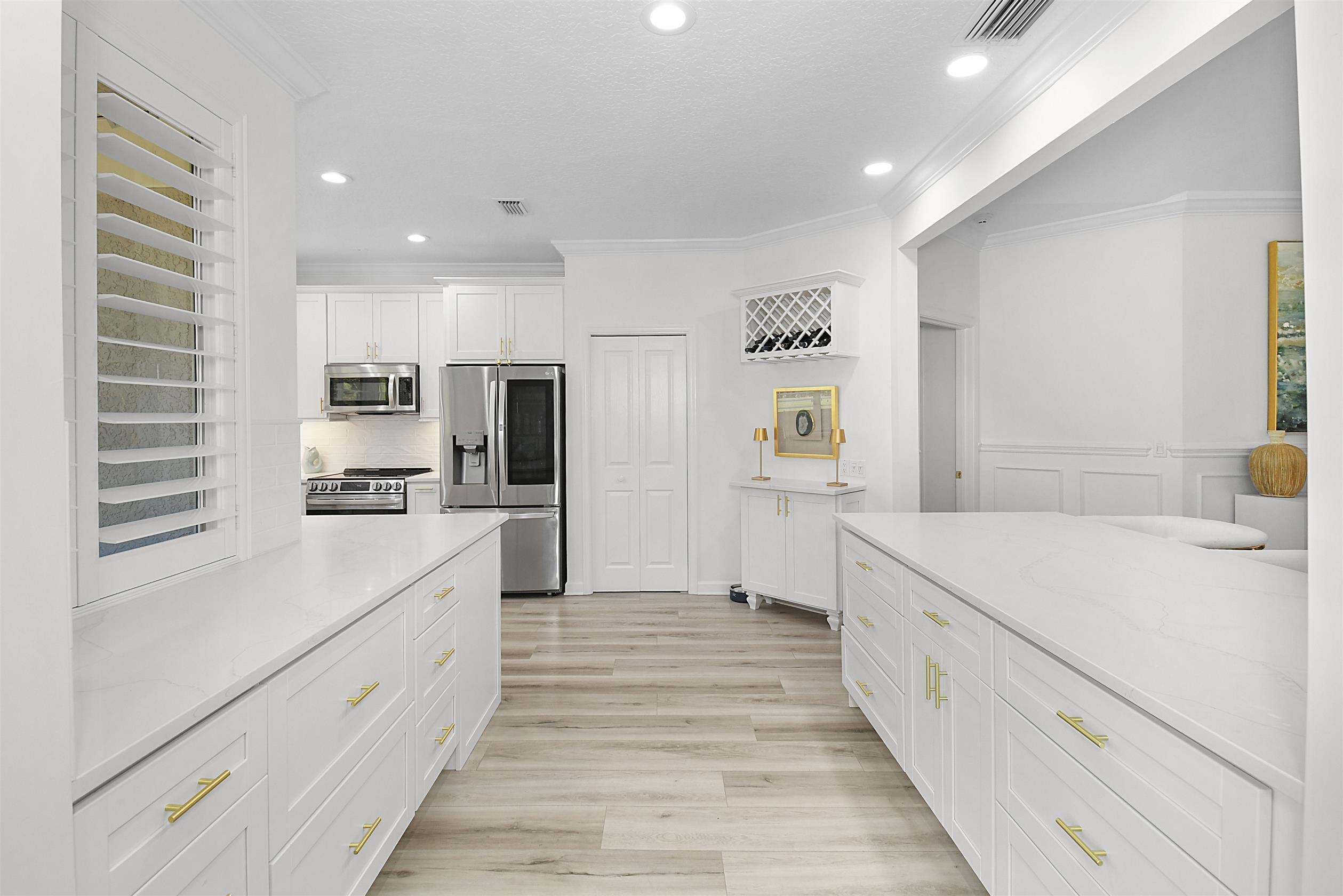 Resort Style Living at it's Finest! This Gorgeous Renovated Home with Spectacular Backyard, has Panoramic Water & Golf Views & is Located in the Newly Updated Gated Community of Willoughby. Bright, Spacious & Stunning this 3 Bedroom + Den Open Layout Home has 2 Full Primary Suites & A Great Room with Vaulted Ceilings. Stunning Dream Kitchen features Stainless Steel Appliances, White Shaker Cabinets, Pull out Drawers & Fabulous Quartz Island & Counters provide Lots of Storage & Counter Space. Glamorous Primary En Suite with a Jacuzzi Walk In Soaker Tub, Large Shower & Dual Vanities. Guest Bedrooms have Plenty of Space for your Family & Friends to Retreat & Relax. Lots of Resort Amenities: 2 Restaurants, Golf, Tennis, Pickleball, Fitness, Dog Parks & More. Near Everything! See Virtual Tour