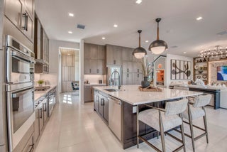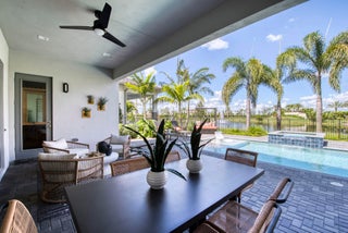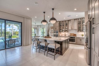 Modern Luxury in Apex at Avenir. This 5-bedroom, 7-bath lakefront home combines elegant design with functional living spaces, including a loft and 2-car garage. The interior features porcelain floor in key areas such as the foyer, great room, family dining, and laundry room. The gourmet kitchen is appointed with upgraded cabinetry, sleek quartz countertops with a flat polished edge, a full backsplash, GE appliances including a gas cooktop, and a large island ideal for cooking and entertaining. The laundry room offers upgraded cabinets with quartz countertops and a built-in sink for added convenience.include a gas stub-out for a future summer kitchen, pool pre-wire, 20 AMP garage receptacles for a future refrigerator, USB/C receptacles in the kitchen and primary bedroom, and a conduit for future EV charger installation. Experience the exceptional lifestyle and ideal location of Apex at Avenir, with easy access to the best of Palm Beach County. Estimated delivery: April/May 2026.