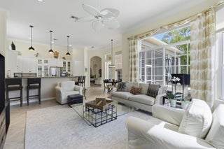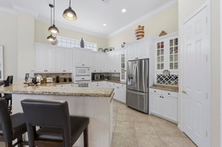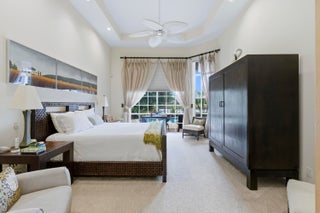 Gracious home set in the very desirable Vizcaya Drive neighborhood in The Country Club at Mirasol. The home enjoys an exceptional view, overlooking both the Sunrise golf course and a beautiful lake, offering a spectacular private setting. A true 3-bedroom, each with its own private bathroom, plus a guest bathroom and an office.Additional features include hurricane shutters installed in 2017, a Generac generator installed in 2020 with a 10-year warranty, and new hurricane impact-resistant front doors. A screened-in patio overlooks the wonderful views. In addition, a new refrigerator and dishwasher were installed in 2022, and LG washer and dryer in 2019.This lovely home offers a social membership, which can be upgraded to a sports membership.