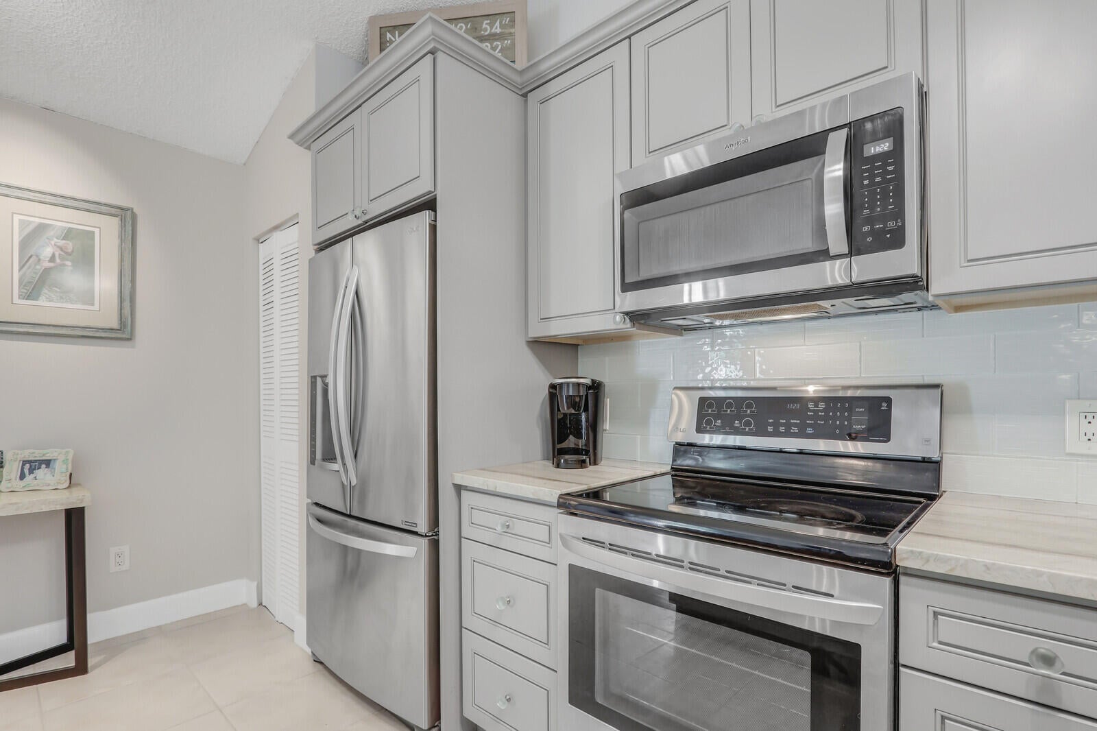 Spacious 3 bedroom, 2 bath move in ready single story townhouse located in desirable community of Westwood Gardens. This beautifully maintained unit has light neutral tile throughout, totally renovated kitchen with stainless appliances, quartz counters, soft close cabinets and all new overhead lighting - makes it perfect for entertaining. The owner has recently renovated the primary and guest baths. The water heater is 2022, A/C and ducts are 2020 and roof is 2016. No assessments here! Relax on the private oversized freshly painted patio or enjoy all the amenities that Westwood Gardens has to offer. Close to some of the best shopping, dining and beaches. Hurry and check this one out...you won't be sorry!