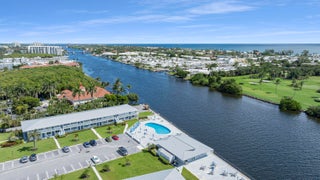 Intracoastal views from your front window! Enjoy this lovely one bedroom one bath apartment featuring an open kitchen, living room and dining room combination, and a bedroom large enough for a king size bed. The Seller will even leave the furniture at no additional cost! Priced just right to make it all you wish for it to be without breaking the bank. You will experience the ocean breezes and watch boaters galore in this 55+ community, with a heated, saltwater pool, newly remodeled clubhouse, new metal roofs, freshly painted and many activities to share with your neighbors.