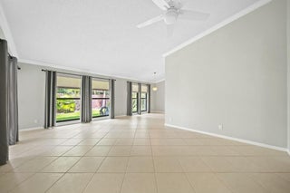 Welcome to this beautifully maintained CBS home in Egret Pond community. Offering 2 bedrooms PLUS den or third bedroom, this home is perfect for both everyday living and working from home. An open-concept layout features a modern kitchen with white cabinetry, stainless steel appliances, and a stylish backsplash. The wet bar adds a touch of luxury, while sliding glass doors lead to a covered, screened lanai overlooking a spacious backyard--great for relaxing or entertaining. With impact windows and a newer AC, this move-in ready gem combines comfort, style, and peace of mind. Enjoy the beautifully landscaped backyard with a privacy fence, ideal for relaxing or hosting gatherings. Located in a community with a 24-hour manned guard gate, and close to I-95 and the Turnpike, you'll have easyaccess to schools, shopping, and dining.