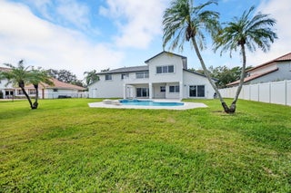 Welcome to this beautifully updated home. The interior boasts new interior paint, new flooring throughout and new light fixtures. The kitchen is a chef's dream with new cabinets, new countertops and all new stainless steel appliances. The primary bedroom features a spacious walk-in closet and private balcony overlooking the backyard. The primary bathroom is a sanctuary with double sinks, new shower and tub. The home also features new secondary bathrooms, new impact windows, new HVAC systems, and a new roof. Outside, enjoy a covered patio overlooking a private in-ground pool, all enclosed in a fenced backyard. This home is a must-see!. Included 100-Day Home Warranty with buyer activation