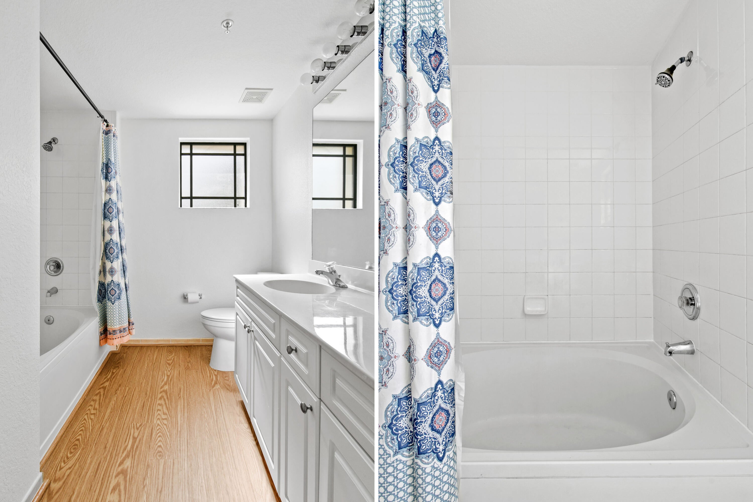 Exceptional Seasonal or Annual rental in the heart of Palm Beach Gardens! Bright and spacious 3-bedroom, 2-bath condo featuring two primary suites with large closets and adjacent full baths, plus a third bedroom ideal for guests or a home office. Enjoy an open floor plan, screened-in patio, and luxury vinyl flooring throughout. Recent updates include new impact windows, a new A/C (2025), and a new water heater (2025). Located in the gated, resort-style community of San Matera, offering amazing amenities pool, fitness center, tennis, and clubhouse. Just minutes to The Gardens Mall, Downtown the Gardens, golf, shopping and restaurants .Don't miss this chance to experience resort style living.