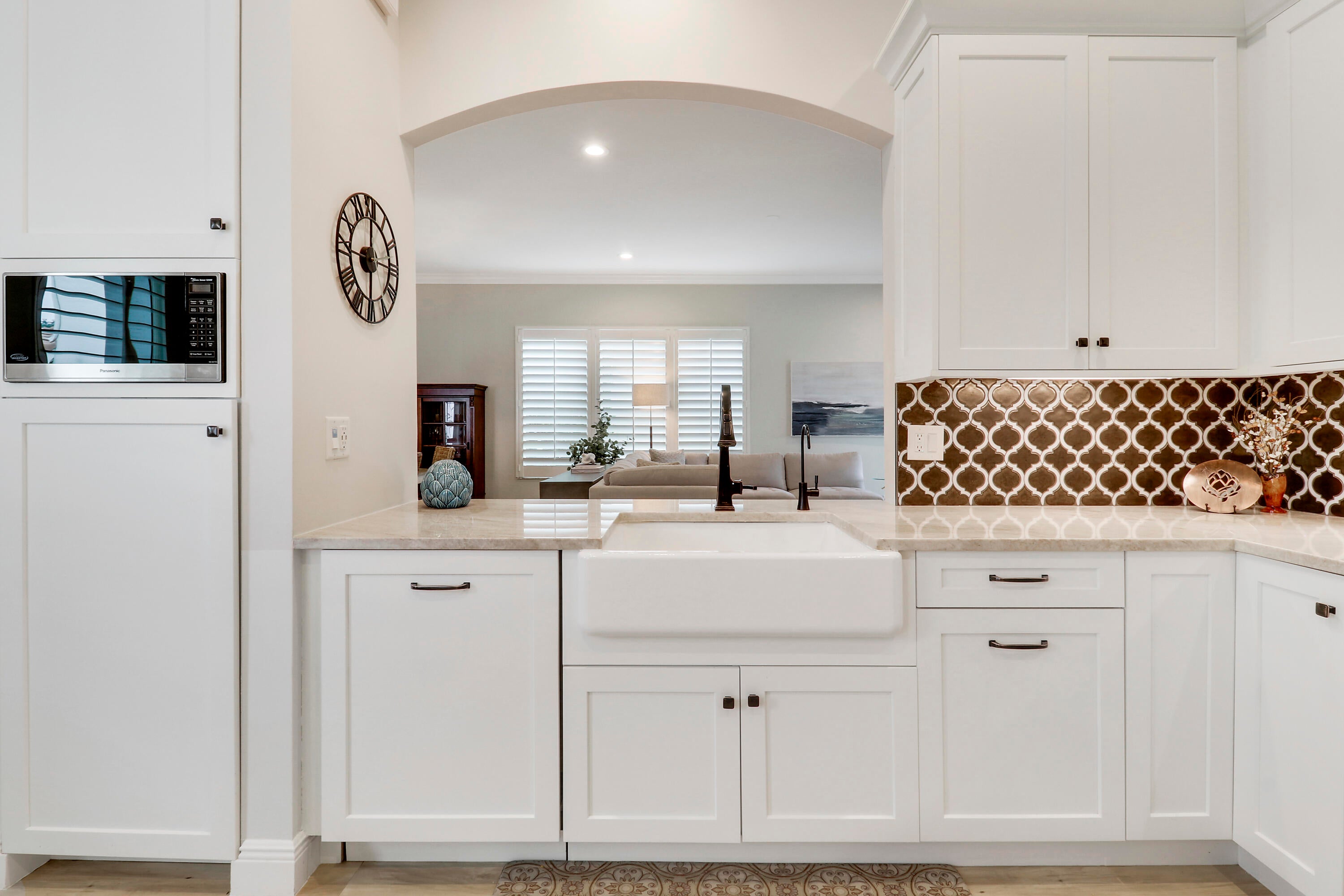 Experience luxury lake-view living in this fully remodeled 3 bedroom, 2 bath home blending high-end design with modern comfort and smart-home convenience. Located in the prestigious guard-gated community of Mirabella, this home's open floor plan flows effortlessly with wood-look porcelain tile and plantation shutters throughout. The chef's kitchen is a true showpiece, with Wolf dual-fuel range, Taj Mahal quartzite countertops, custom cabinetry, copper-finish ceramic and marble tile backsplash, cabinet-faced Sub-Zero refrigerator and Miele dishwasher, reverse osmosis water filtration system. Thoughtfully redesigned bathrooms evoke spa-like tranquility with elegant finishes. Other key features include brand new impact windows and doors, new A/C (2024), water softener system. The versatilelayout with flexible den space is perfectly suited for both seasonal retreats and year-round comfort. This stunning residence impresses from the start with distinguished exterior paint, upgraded coach lights, and an expanded three-car driveway complementing the two-car garage with built-in storage. The HOA includes premium cable and internet, 24-hour security with alarm system monitoring, an elegant clubhouse with a resort-style pool, a state-of-the-art fitness center, a children's clubhouse, and Har-Tru tennis courts. Perfectly situated just minutes from pristine beaches, upscale shopping, fine dining, top-rated schools, and PBI airport, this home blends luxury, comfort, and convenience in one remarkable package.