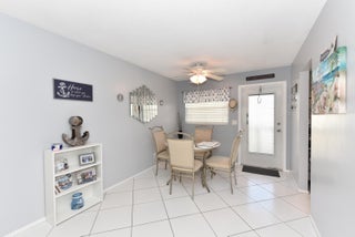 Very well maintained condo. with upgades through out in Village Royal. One bedroom, 1-1/2 baths. Both bathrooms have been renovated with a walk-in shower in main bath. . Laminate wood flooring in the bedroom.. Main living area has white ceramic tile. No dishwasher in kitchen. AC unit 2015. Newer GE electric panel. Partial accordian hurricane shutters. Minutes to beaches, Brightline train and waterfront dining and activities. Fully furnished and ready to make your new home or winter retreat! Washer and dryer in florida sunroom. The association has a minimum credit score of 700. Clubhouse, barbeque grill, pool, schuffleboard and more! Sorry No pets allowed. This is an adult community and must be 55 or better.