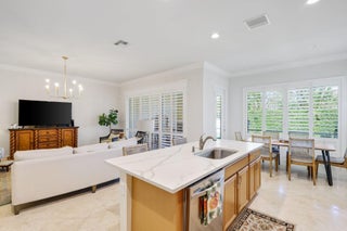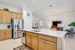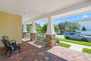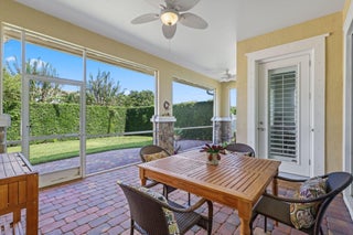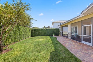 Welcome home to this model perfect one story Sandpiper model, featuring the most charming front elevation available! The premier lot is located on a quiet side street and facing an open green space, plus a spacious and private backyard with covered, screened porch and extended patio pavers, plenty of room for a pool. Features adding unique value to this home include travertine flooring, custom millwork and plantation shutters throughout, updated shower and Toto commode in the master bath. Floor plan, construction and amenity details are in the photos section. Notable add ons: all bedrooms have finished closets. New refrigerator, disposal and water heater. Added central vacuum. Added sink and cabinets in laundry room. Quartz kitchen countertops, granite in bathrooms.Wired for surround sound.living room floor outlets. Gutters installed