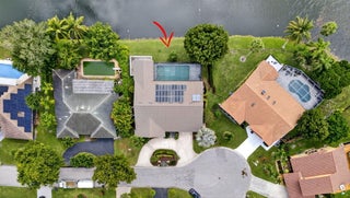 DECORATOR READY! This exceptional waterfront home is truly one of a kind! Perfectly positioned on a quiet cul-de-sac with a circular driveway, it offers both privacy and charm. Enjoy low electric bills thanks to the rooftop solar power system and updated 119-gallon solar water heater. The spacious eat-in kitchen features stainless steel appliances, two dishwashers, and abundant cabinetry! A durable 50-year stone-coated metal roof, impact windows, and hurricane-rated oversized garage door provide peace of mind. Step outside to your oversized solar-heated pool with variable-speed pump and soak in the tranquil canal views. Freshly painted interior w/newer washer, dryer, and refrigerator. All the heavy lifting has been done-roof, plumbing, windows. Bring your imagination and make it your own