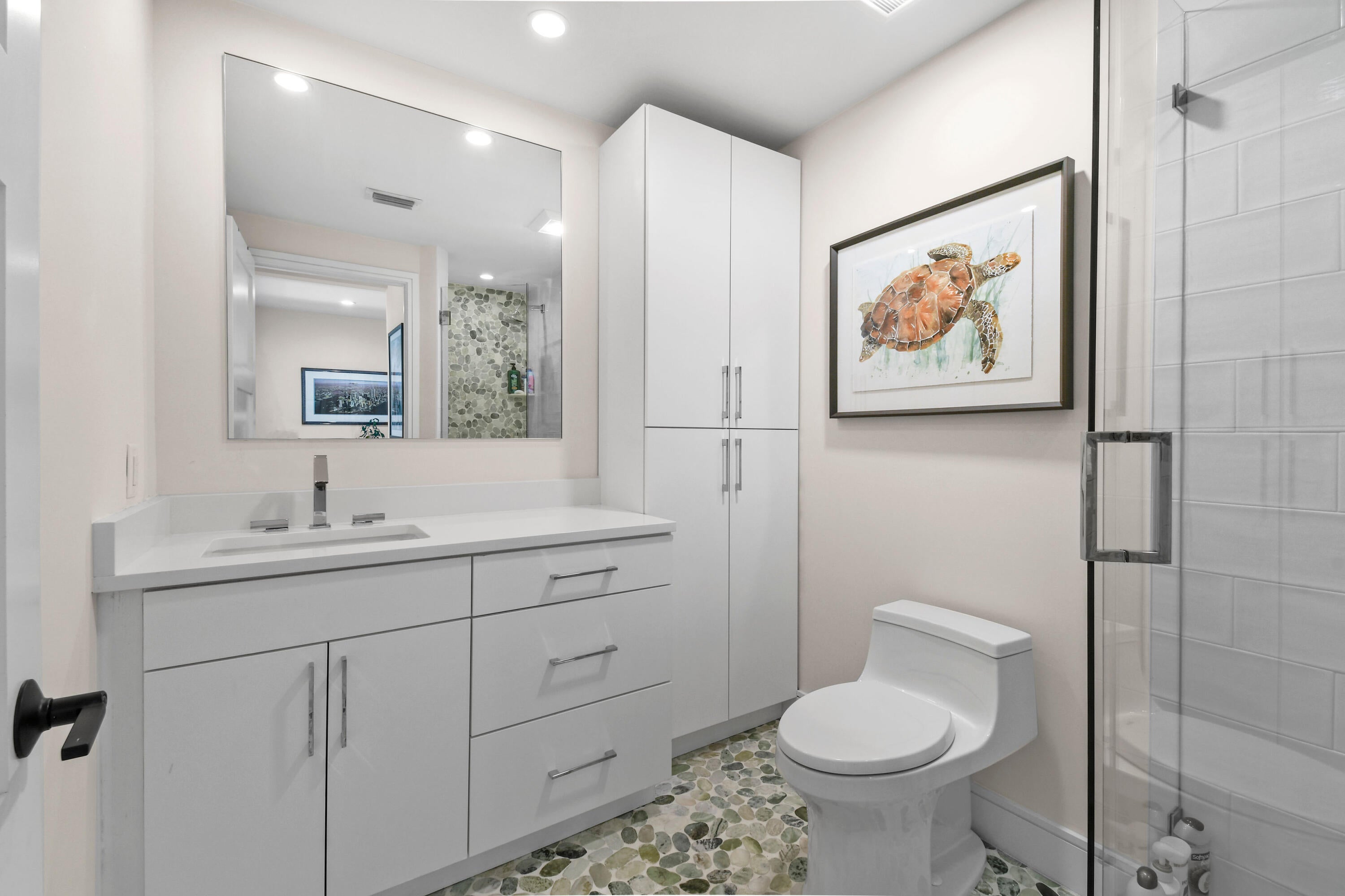 Discover unparalleled coastal living at 220 Celestial Way. This exquisite end-unit townhome is tucked within Wexford Court of Juno Beach--an intimate gated enclave of only seven residences. Just steps away from the pristine beaches of Juno, the property offers a lifestyle of sophistication and tranquility with private beach access and a community pool.Completely reimagined from the exterior walls in, this 3-bedroom, 3-bathroom residence has been gutted and renovated down to the studs, now showcasing high-end finishes and modern conveniences, including all new electrical and plumbing. The main living area welcomes you with wide-plank wood floors, expansive impact windows, and a seamless flow into the show-stopping kitchen. Here, a spacious quartz island becomes the centerpiece, surrounded by custom cabinetry, pendant lighting, and top-of-the-line stainless steel appliances including a gas range with statement hood and built-in refrigerator. The bathrooms rival a luxury spa experience. The primary suite showcases a grand bath with dual vanities, a soaking tub, and a glass-enclosed shower with striking floor-to-ceiling tile work. Additional baths are equally refined, blending sleek cabinetry, quartz counters, and designer finishes with custom stone and tile details. On the ground floor, the guest suite offers a private retreat with its own full bath, while the upper level hosts two spacious primary suites. A versatile loft extends the living space upstairs and opens directly to a private balcony, creating the perfect retreat for enjoying ocean breezes and tranquil garden views. The main suite offers enough space for a home office or gym, along with a grand walk-in closet. Step outside to an inviting patio framed by lush tropical foliage, complete with built-in grill and outdoor showerperfect after a day on the sand. With a two-car garage, generous driveway, and unmatched location, this home blends exclusivity and convenience. Just minutes from the Jupiter waterfront and world-class dining, shopping, and golf, it's a rare opportunity to own a true piece of paradise in Juno Beach.