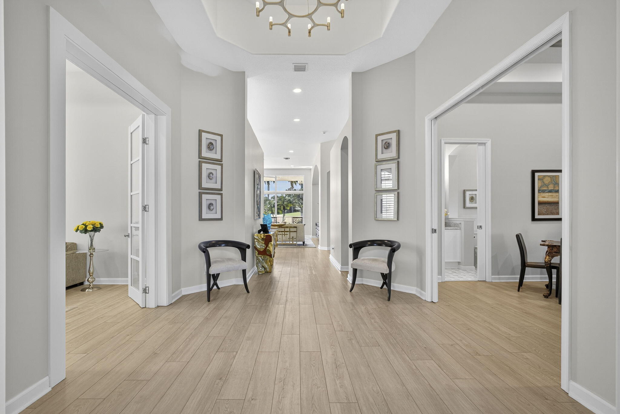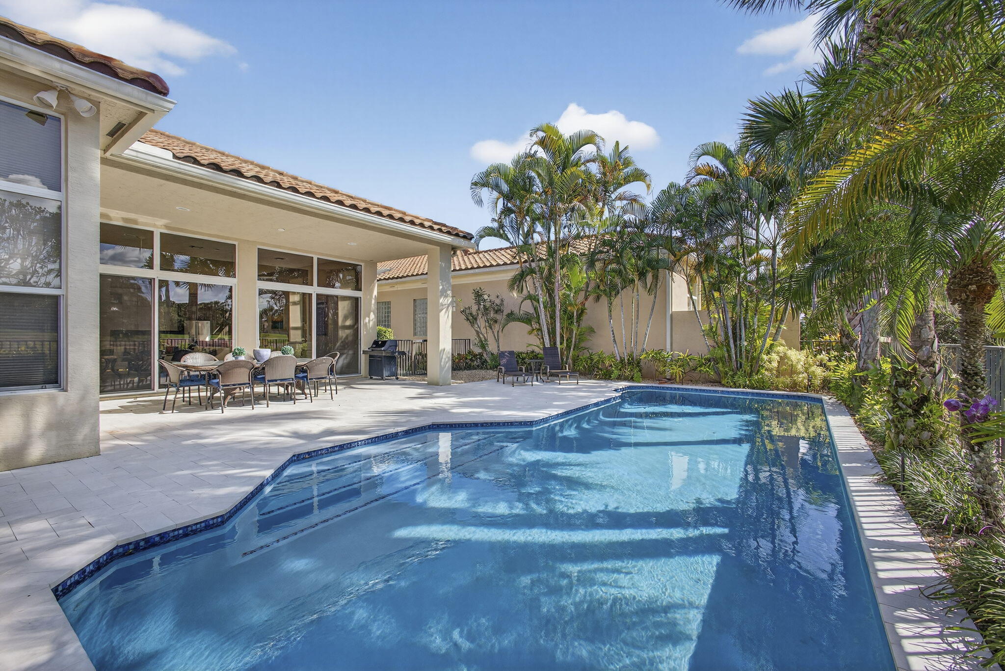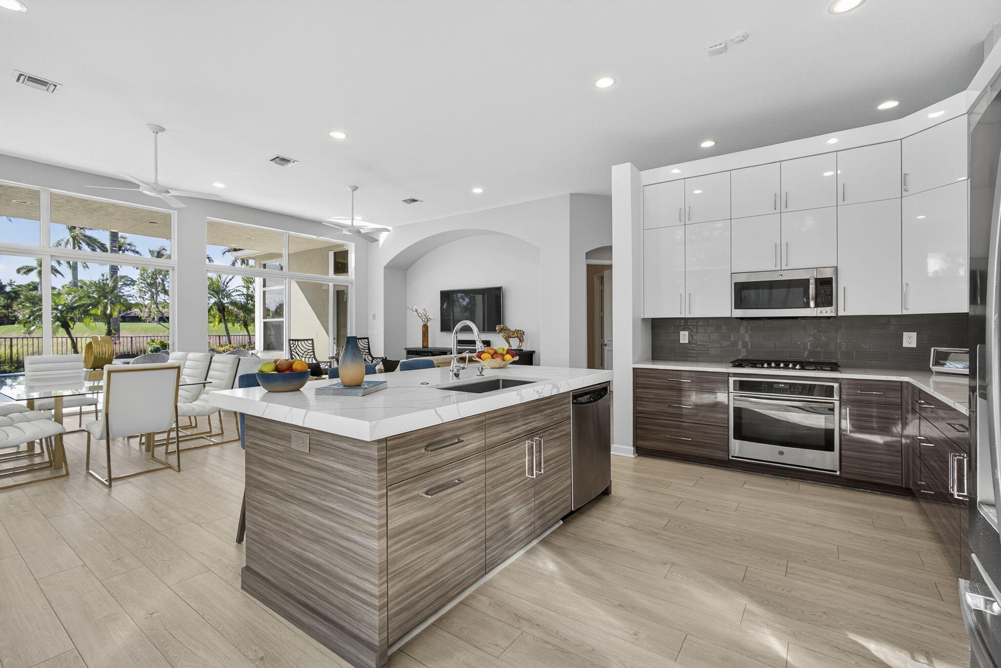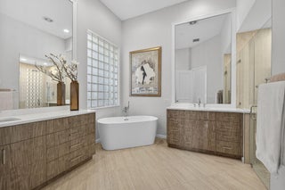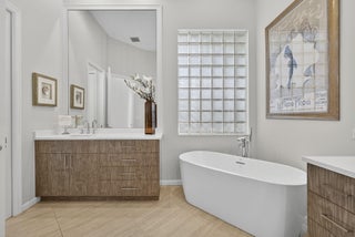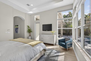 Rarely do you find a home with such a spectacular golf view, impact windows and doors, and a complete renovation. This three-bedroom, three-bath residence showcases a modern, contemporary kitchen and master bath, luxury vinyl flooring throughout, decorator finishes, custom paint colors, LED lighting, and more.The spacious primary suite offers beautiful views and a serene retreat. The master bathroom was impeccably designed with a freestanding tub, stylish cabinetry, new tile, and designer fixtures creating a spa-like atmosphere.The second bedroom is a private en suite featuring a large walk-in closet, providing comfort and privacy for family or guests. A third bedroom includes a Murphy bed, making it ideal for use as an office or den with convenient access to a full bath.An enclosed den/TV room adds flexibility and can be used as a private media or reading space. Enjoy southern exposure for all-day Florida sunshine on the beautifully renovated patio, highlighted by a stunning lap pool with rich blue tones, perfect for relaxing or entertaining. The large two-and-a-half-car garage provides ample storage, and the home's location at the end of a quiet cul-de-sac ensures exceptional privacy and tranquility. This home truly captures the best of Florida living in one of Mirasol's most sought-after settings.
