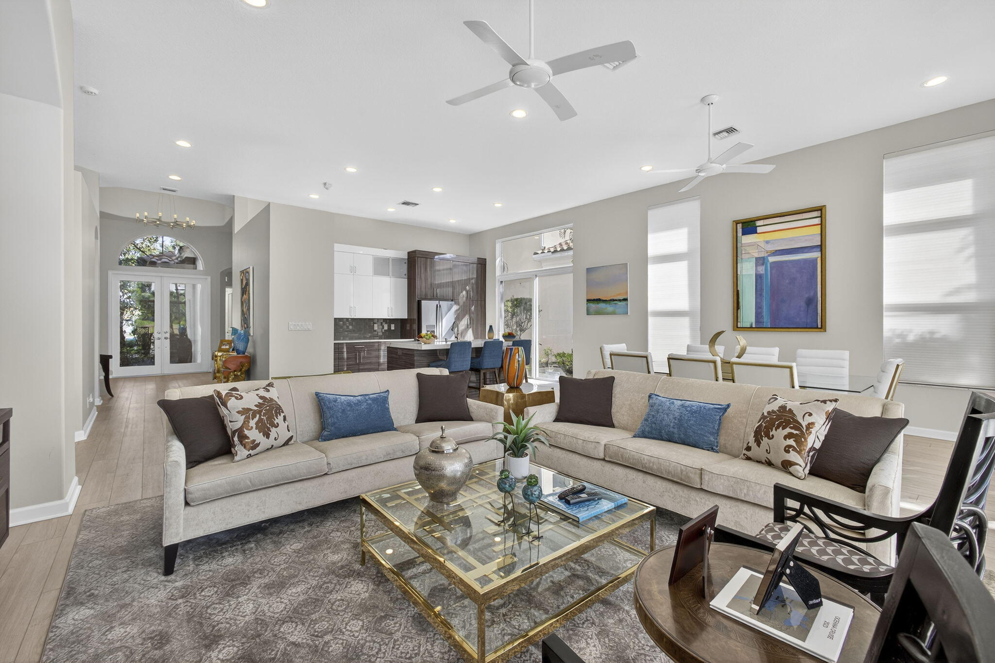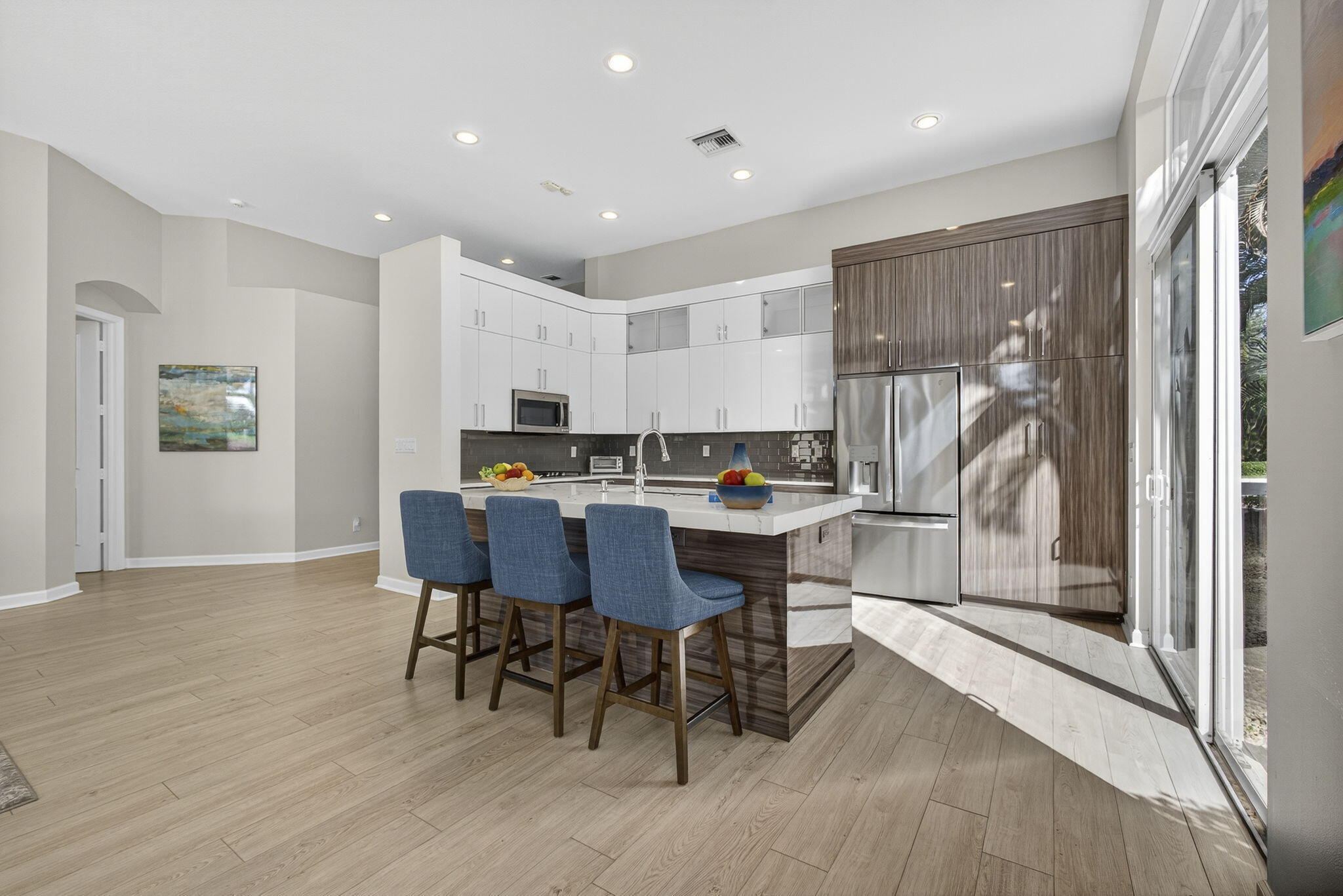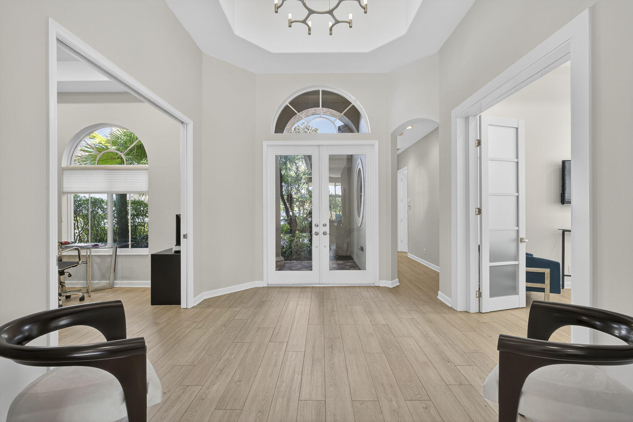 Rarely do you find a home with such a spectacular golf view, impact windows and doors, and a complete renovation. This three-bedroom, three-bath residence showcases a modern, contemporary kitchen and master bath, luxury vinyl flooring throughout, decorator finishes, custom paint colors, LED lighting, and more.The spacious primary suite offers beautiful views and a serene retreat. The master bathroom was impeccably designed with a freestanding tub, stylish cabinetry, new tile, and designer fixtures creating a spa-like atmosphere.The second bedroom is a private en suite featuring a large walk-in closet, providing comfort and privacy for family or guests. A third bedroom includes a Murphy bed, making it ideal for use as an office or den with convenient access to a full bath.An enclosed den/TV room adds flexibility and can be used as a private media or reading space. Enjoy southern exposure for all-day Florida sunshine on the beautifully renovated patio, highlighted by a stunning lap pool with rich blue tones, perfect for relaxing or entertaining. The large two-and-a-half-car garage provides ample storage, and the home's location at the end of a quiet cul-de-sac ensures exceptional privacy and tranquility. This home truly captures the best of Florida living in one of Mirasol's most sought-after settings.