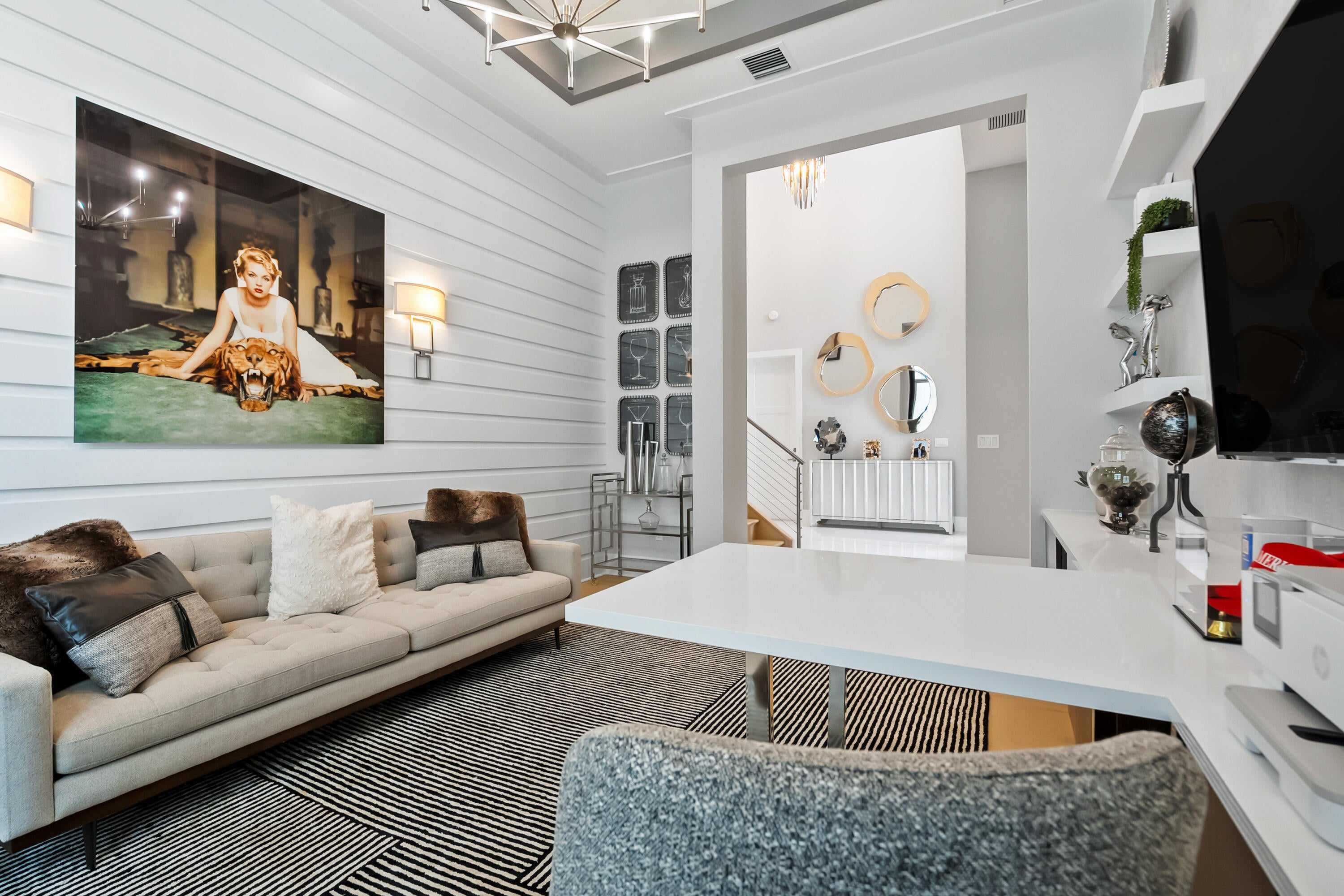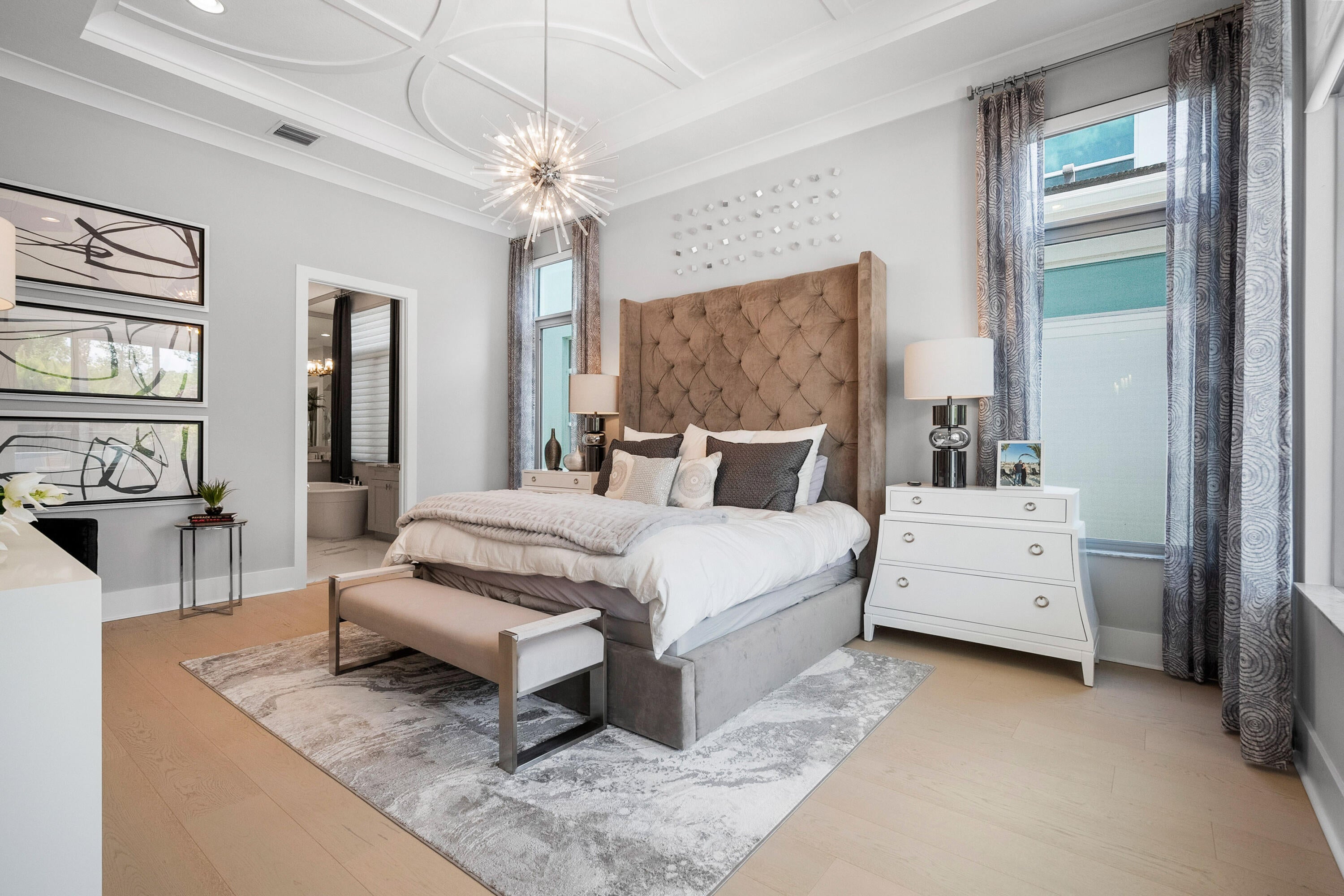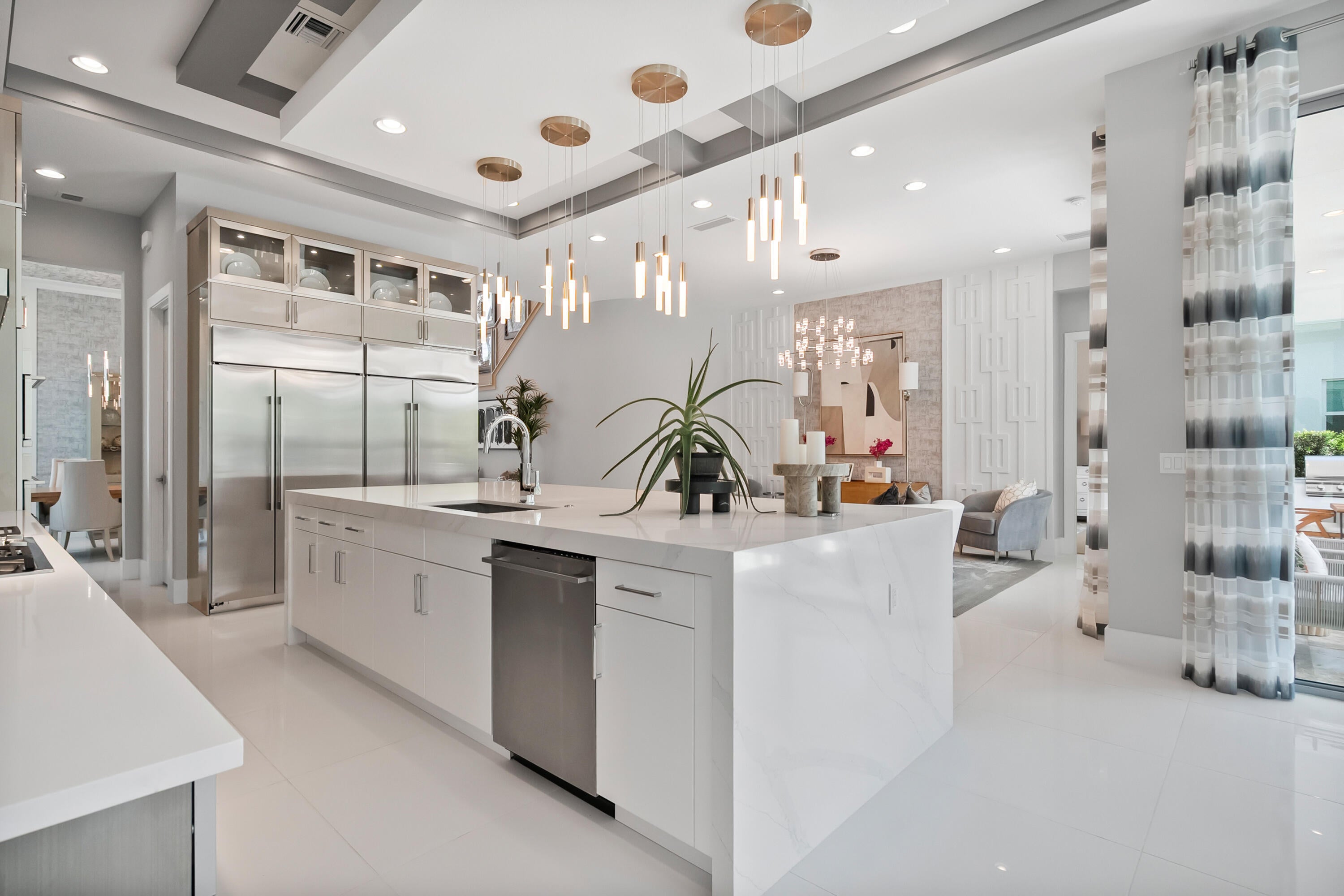 Presenting 4210 Mendel Lane - a breathtaking, move-in-ready designer model home featuring 5 bedrooms, 5.5 bathrooms, and 5,100+ square feet of modern sophistication. Every detail has been meticulously curated from gleaming white marble floors and dramatic coffered ceilings to custom millwork, designer lighting, and a chef's kitchen equipped with premium, top-tier appliances.Offered fully furnished, this residence is a showcase of refined elegance and thoughtful design. Each spacious bedroom offers a private en suite bath with stunning tilework, while the expansive first-floor primary suite is a true sanctuary, complete with a spa-inspired bath, freestanding soaking tub, frameless glass shower, and custom-built walk-in closet.Additional highlights include two sun-filled laundryrooms, an upstairs family/game room with a private balcony, and a three-car garage - all designed for effortless family living and gracious guest accommodations. Step outside into your own private resort-style oasis, featuring a sparkling pool, tranquil waterfall features, relaxing spa, and a covered lanai with a fully equipped summer kitchen - perfect for seamless entertaining and enjoying the best of Florida luxury living. Within Alton, residents experience an exceptional lifestyle with premier amenities, including a beautifully appointed clubhouse, resort-style pool, state-of-the-art fitness center, and courts for pickleball, tennis, and basketball-- all just minutes from world-class dining, golf, and beaches.