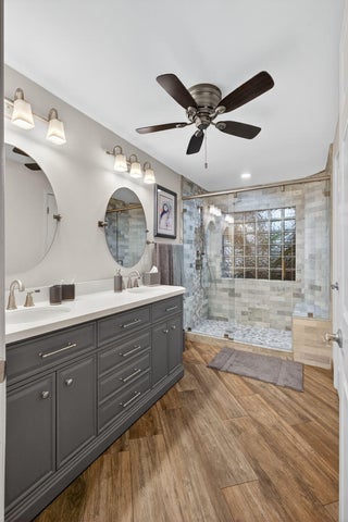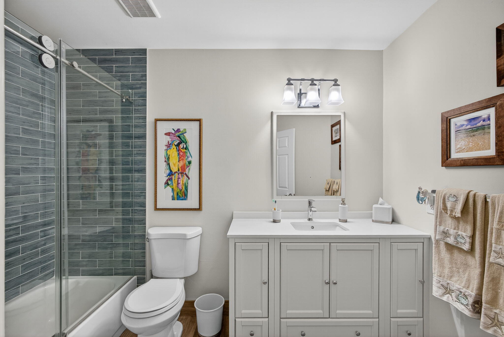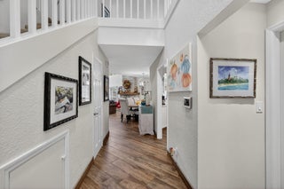 Renovated 3 bed/2.5 bath single family pool home in the guard gated community of PGA National. Kitchen has LG stainless appliances, granite countertops, glass tile backsplash, white shaker cabinetry & stainless farm sink. Family room/dining room have vaulted ceilings, impact sliding doors & stone fireplace with wood mantel. Primary bedroom has impact sliding doors to screened patio, vaulted ceiling, walk-in closet, linen closet & primary bath with double vanities, private water closet & large shower with frameless barn door & marble tile. There is also a guest bath & den with double glass doors on the 1st floor. The second floor has 2 guest bedrooms, guest bathroom & loft with built-in shelves. Screened patio has pool & Mexican tile floor. Paver driveway. Complete impact protection.