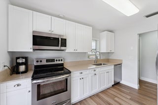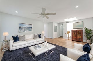 Step into your private retreat with this charming single-story corner villa, perfectly nestled in a gated community surrounded by lush landscaping. This 2-bedroom, 2-bathroom residence has been thoughtfully renovated for modern comfort and style, offering a peaceful and inviting atmosphere. Inside, you'll find luxury vinyl flooring, fresh interior paint, recessed lighting throughout, and updated bathroom vanities. The spacious bedrooms provide a tranquil escape, while the bright, eat-in kitchen features a beautiful skylight that fills the space with natural light. Enjoy cooking and entertaining with white shaker soft-close cabinets, Quartz countertops, and stainless-steel appliances. Key updates include a new roof (2023) and a newer AC unit, ensuring year-round comfort and peace of mindThe extended patio offers extra space for morning coffee, evening relaxation, or hosting guests. Additional highlights include a 2-car driveway and access to community amenities such as a clubhouse and pool perfect for leisure and social gatherings. Located in a serene, tree-lined setting, this move-in-ready villa is the perfect blend of convenience, privacy, and charm.