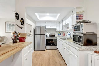 Light, bright, and airy 2nd-floor 1BR/1.5BA condo in a desirable 55+ community. This charming residence offers low-maintenance living with vinyl and tile flooring--no carpet! The spacious bedroom features two walk-in closets plus additional linen and hallway storage. Enjoy a well-equipped kitchen with newer appliances and a private screened patio, with new screens and framing, overlooking a serene, landscaped setting . Community amenities include a pool, clubhouse, shuffleboard, and grilling area. Conveniently located near shopping, dining, beaches, and hospital. Maintenance fee covers cable, common areas, lawn care, parking, and laundry facilities--perfect for easy Florida living!