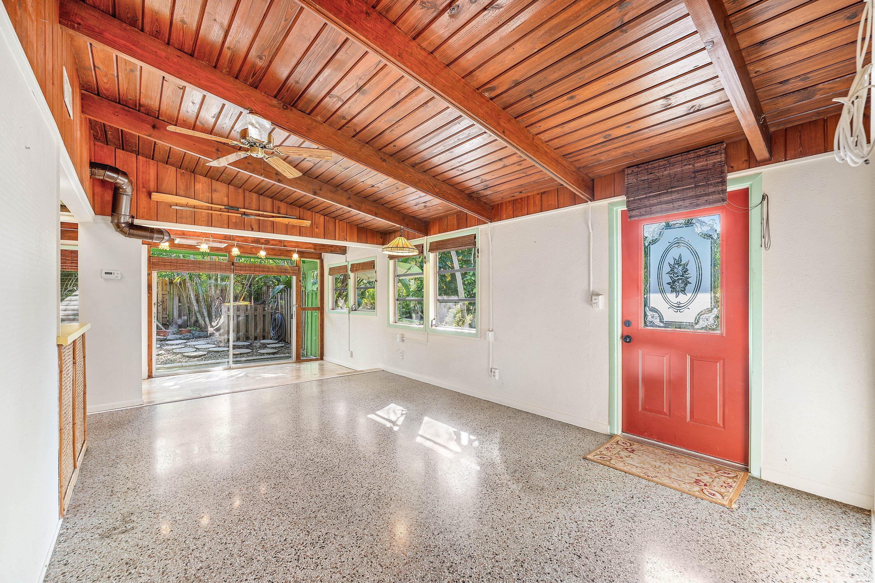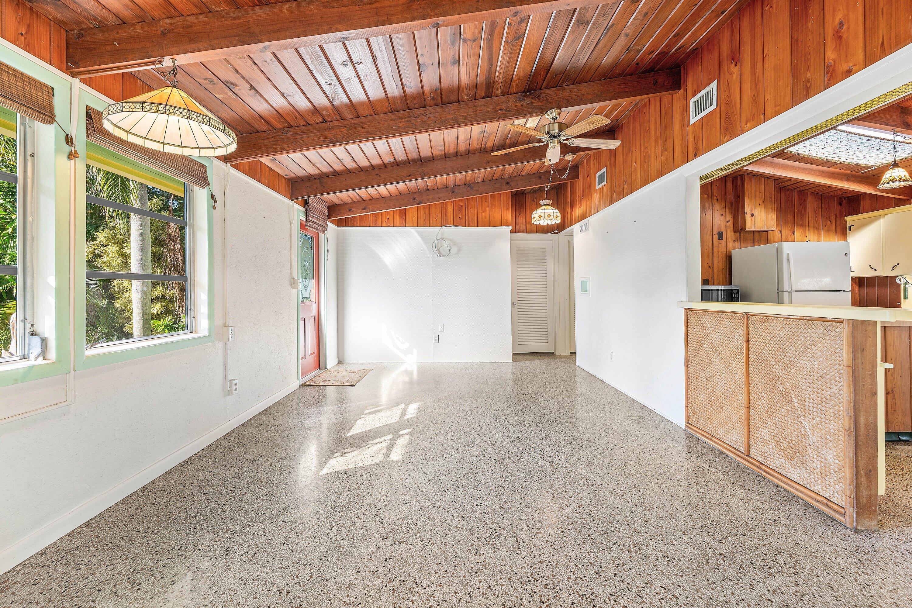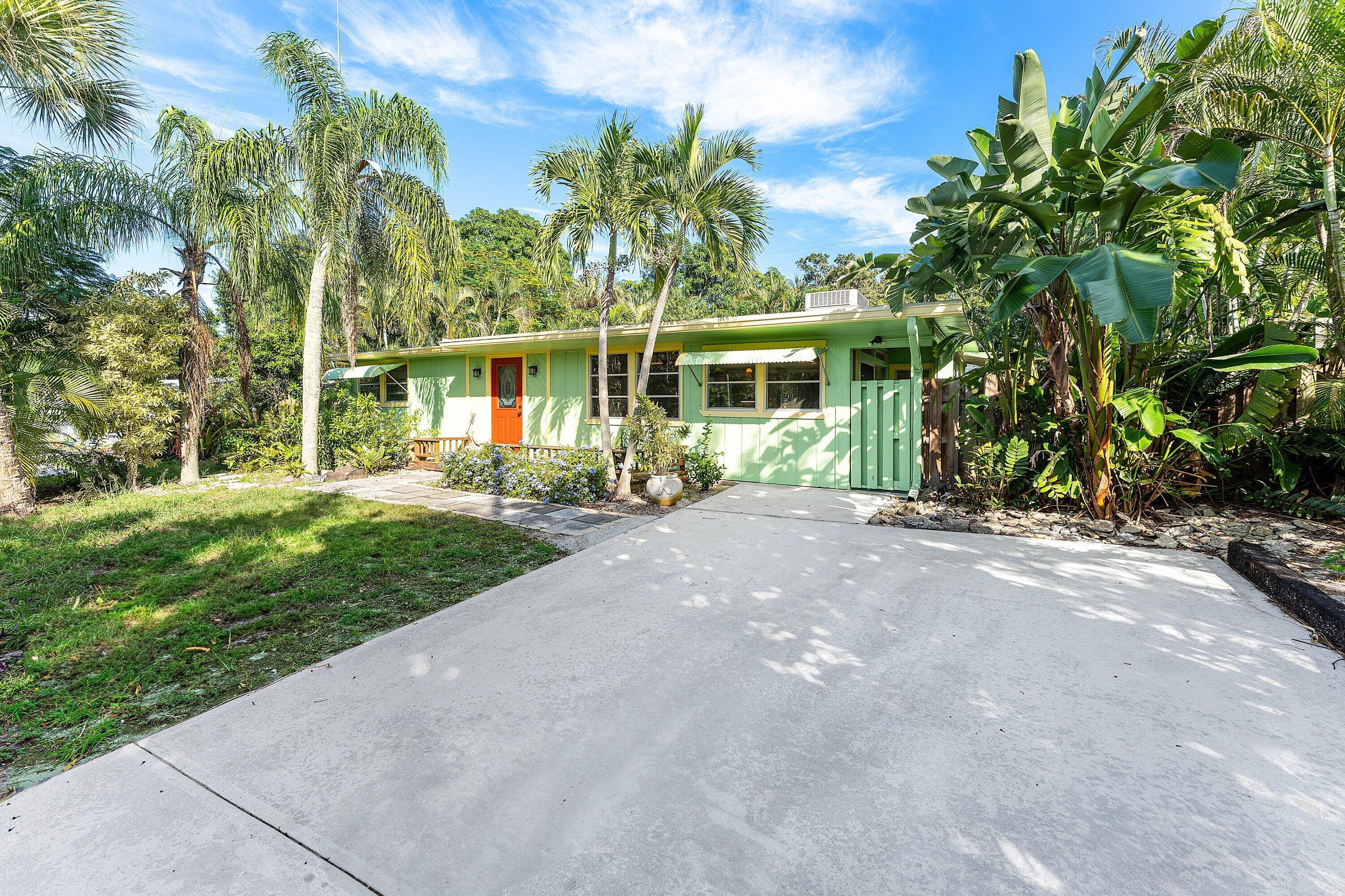 Welcome to your private Shangri la as this Key West 2/1 well maintained bungalow is nestled in a tropical setting. Enjoy the quiet nights in your screened lanai as you look out at large, treed backyard. This home features original Dade pine beams, terrazzo floors, metal roof new water heater, washer dryer, plenty of cabinets space and much more. A short walk takes you to your Day Dock on the St. Lucie River.
