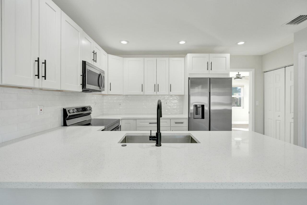 Fully renovated and move-in ready, this 3-bedroom, 2-bath home combines modern updates with coastal charm. Enjoy an open kitchen with quartz countertops, white Shaker cabinets, and stainless-steel appliances flowing into bright living spaces with luxury vinyl flooring throughout. The split-bedroom layout includes a spacious primary suite with a walk-in closet and updated bath. Recent upgrades feature impact windows, new plumbing (no cast iron), a tankless water heater, updated electrical panel, and newer washer/dryer. The large backyard offers room for a pool, garden, or outdoor entertaining area. Ideally located just steps from downtown restaurants, shops, and entertainment--and only a short bike ride to the beach.
