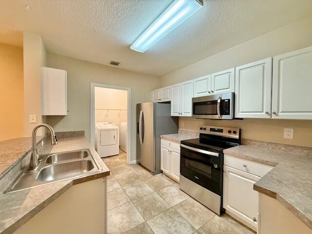 Enjoy the best of Vero Beach living in this 3 bed, 2 bath first floor home located just minutes from the Indian River Lagoon. This gated community offers security and resort-style amenities including a pool, clubhouse, fitness center, and tennis courts. Inside you'll find BRAND NEW stainless steel appliances, new washer & dryer, tile floors throughout, a spacious master suite with dual vanities and a large walk-in closet, plus a full laundry room for convenience. Relax on the screened lanai and enjoy the coastal breeze. New A/C (May 2024) and water heater (July 2020). Close to shopping, dining, the beach, and Vero Beach Regional Airport.