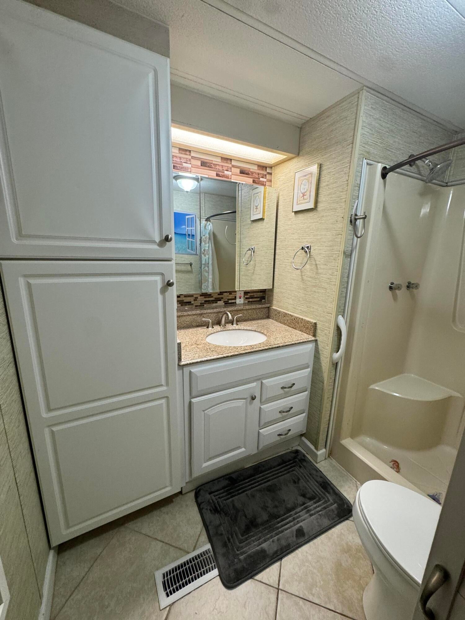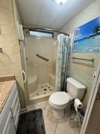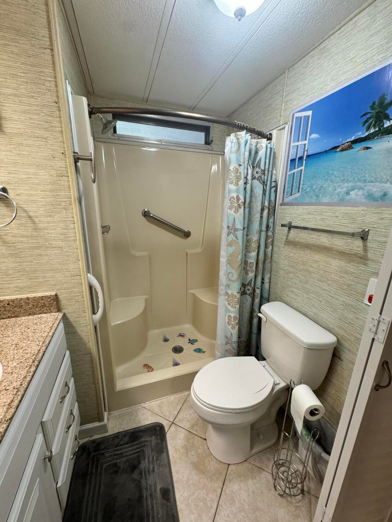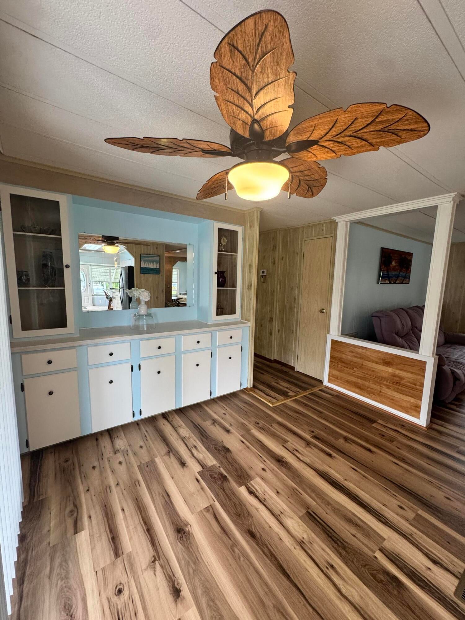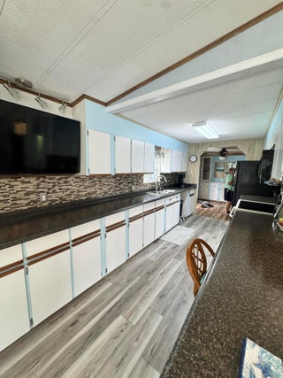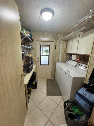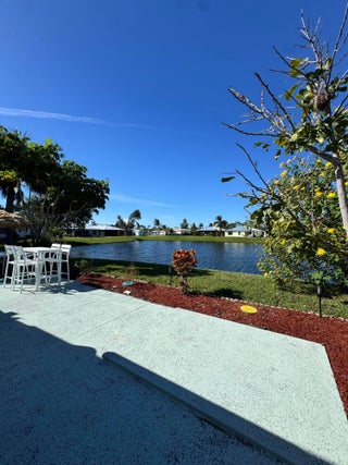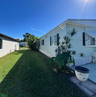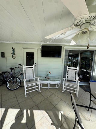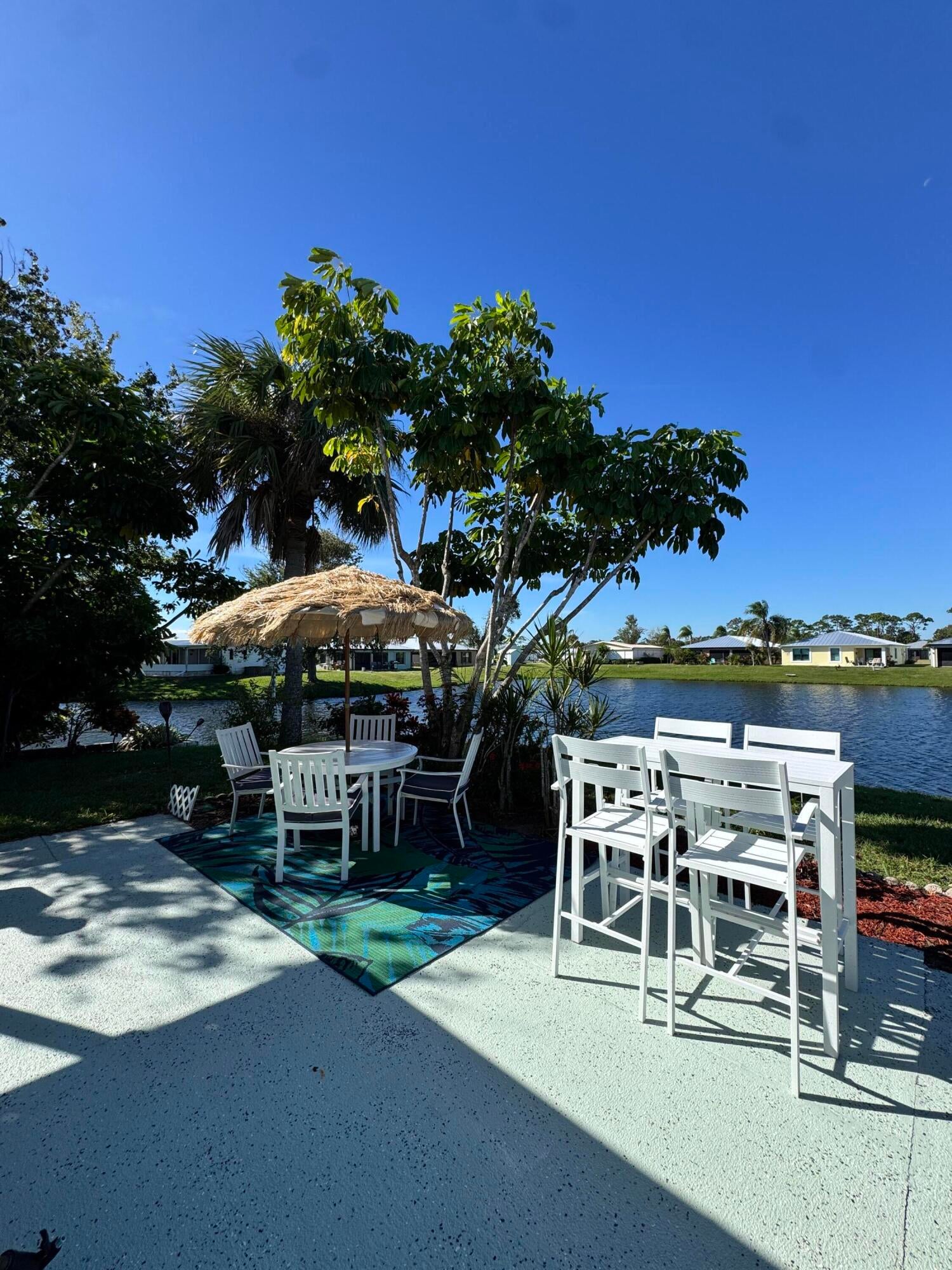 Lovely 2-bedroom 2-bath Lake view home. This home is located in the desirable 55+ Spanish Lakes Country Club Village community. The home has a beautiful lake view on two sides--screened-in patio which has windows that can be closed for future A/C. Patio is overlooking the lake, great for morning coffee and evening cocktails. Added a 12X28 Patio for enjoying the Florida sun. This home has laminate and carpet flooring. The home has built-in shelves in the dining area that provide additional storage. The primary suite bathroom has a built-in jewelry cabinet, new toilets, and a vanity. Roof is 2022, Vapier barrier and tie downs 2022. Brand New 2025 Carport. Home is being sold partially furnished. Lawn care and trash removal are included in the lot rent. 2 pools, shuffleboard shuffleboard, bocceball, pickleball, tennis, and much more. MUST SEE