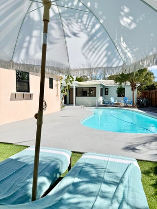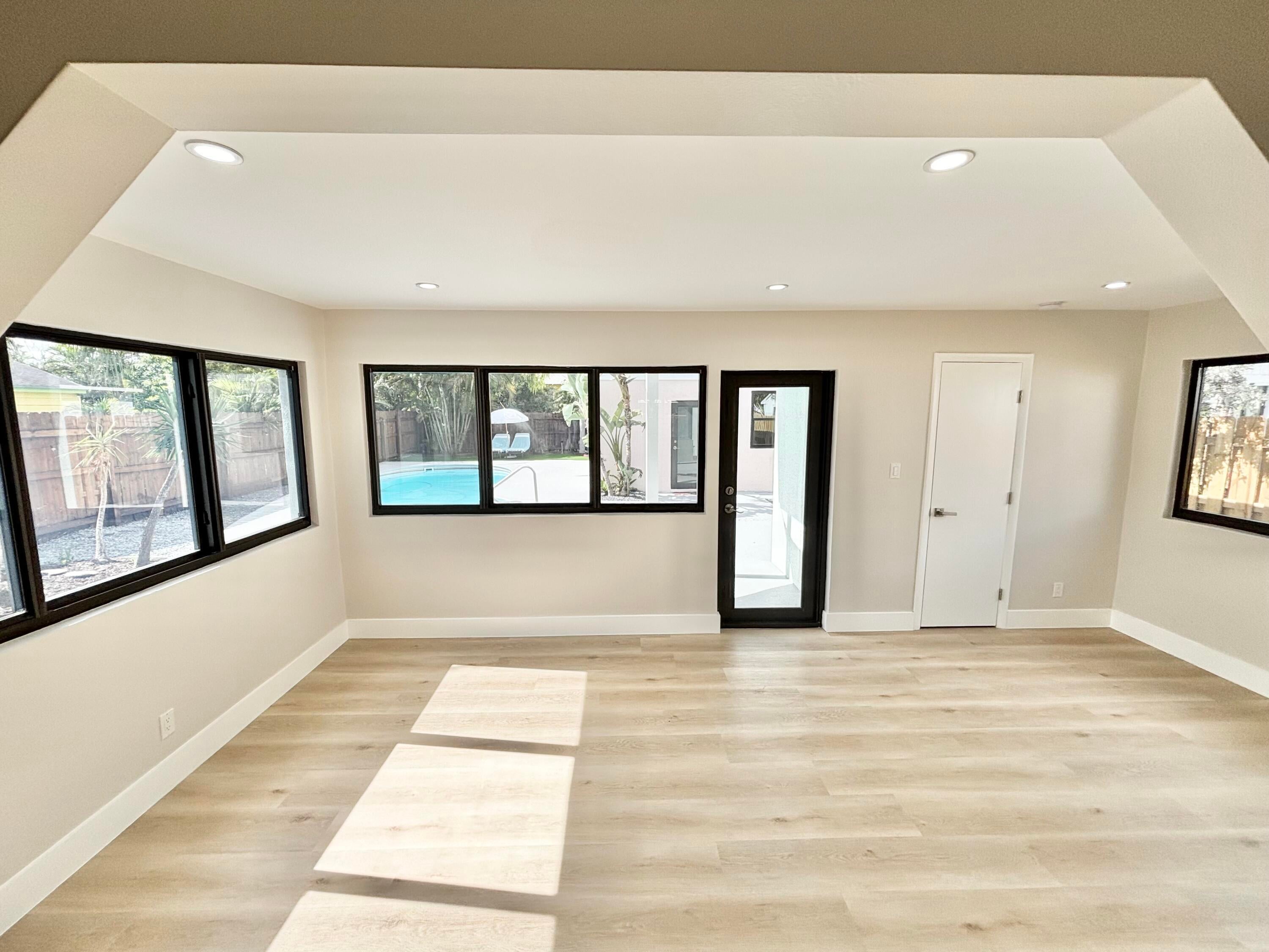 Welcome to 1121 N Ocean Breeze in the prestigious neighborhood of Parrot Cove- A truly one-of-a-kind property. Beautiful midcentury classic home with a guest suite and in-ground pool. The main house is a 2 bed /1 bath along with an equally stunning 1 Bed/1 Bath suite. Both are CBS construction with impact windows & doors. Professionally designed to preserve its vintage Florida charm with a modernized twist. Masterful kitchen complete w/ a porcelain farm-sink, quartz countertops, & SS appliances. Eat-in kitchen large enough to seat 3-4! Luxury vinyl flooring & 5inch baseboards throughout. Built-in sound system in & outside! Sun-soaked pool area suitable for entertainers & sun bathers. Lots of deck space and an outdoor shower w/ hot & cold! Large front lawn/courtyard area is rarely found.Pavers walkway invites you to the covered patio overlooking the lush landscaping & privacy hedges. Updated irrigation system w/ digital timer. Convenient street parking in the front & bonus alleyway access and parking in the back! Loads of potential for guests, family, home office, & more! Just minutes from the beach, shopping, golf, major roads & more. Listing subject errors, omissions, & change without notice. Room Measurements approx. See it today!