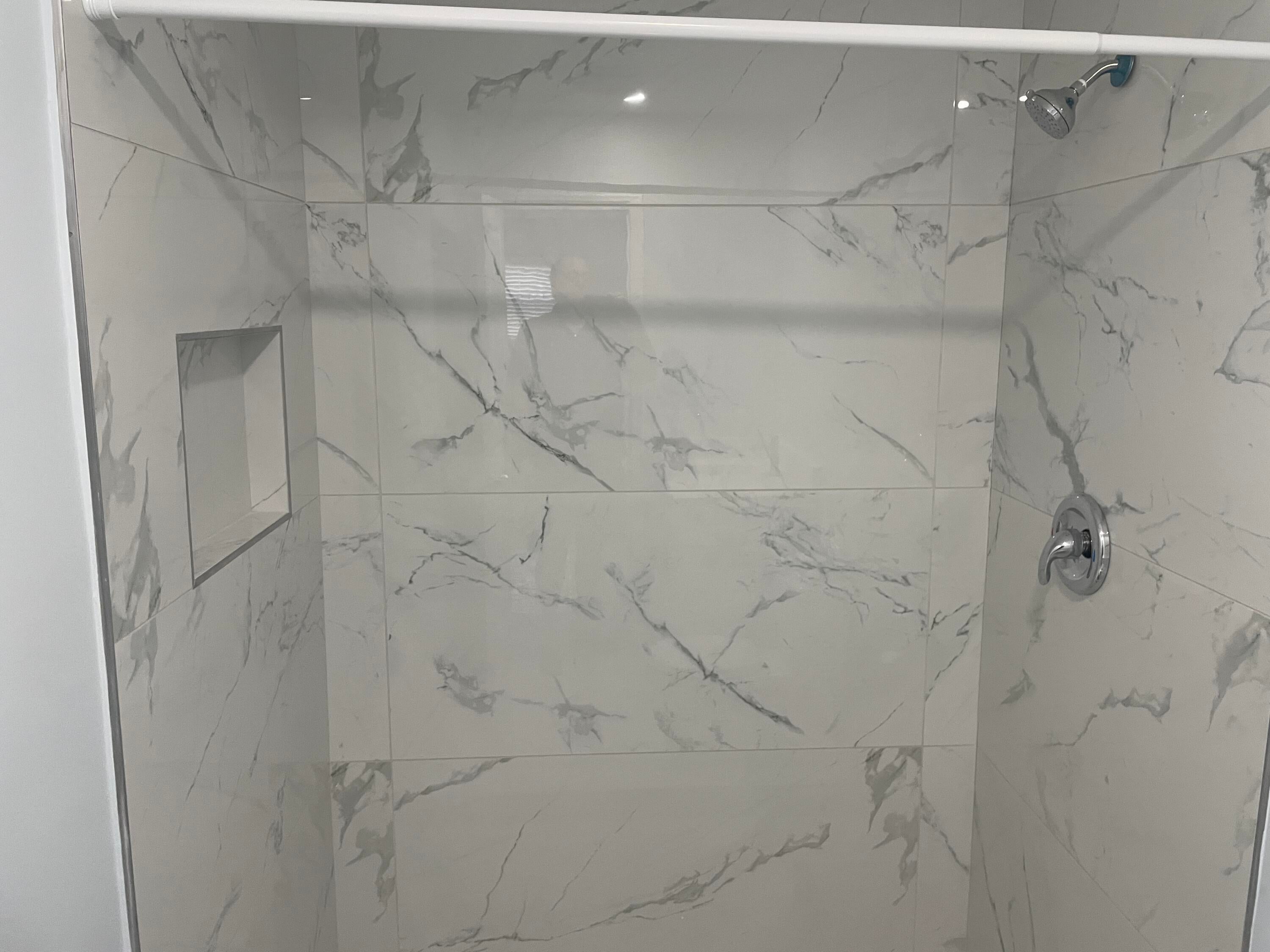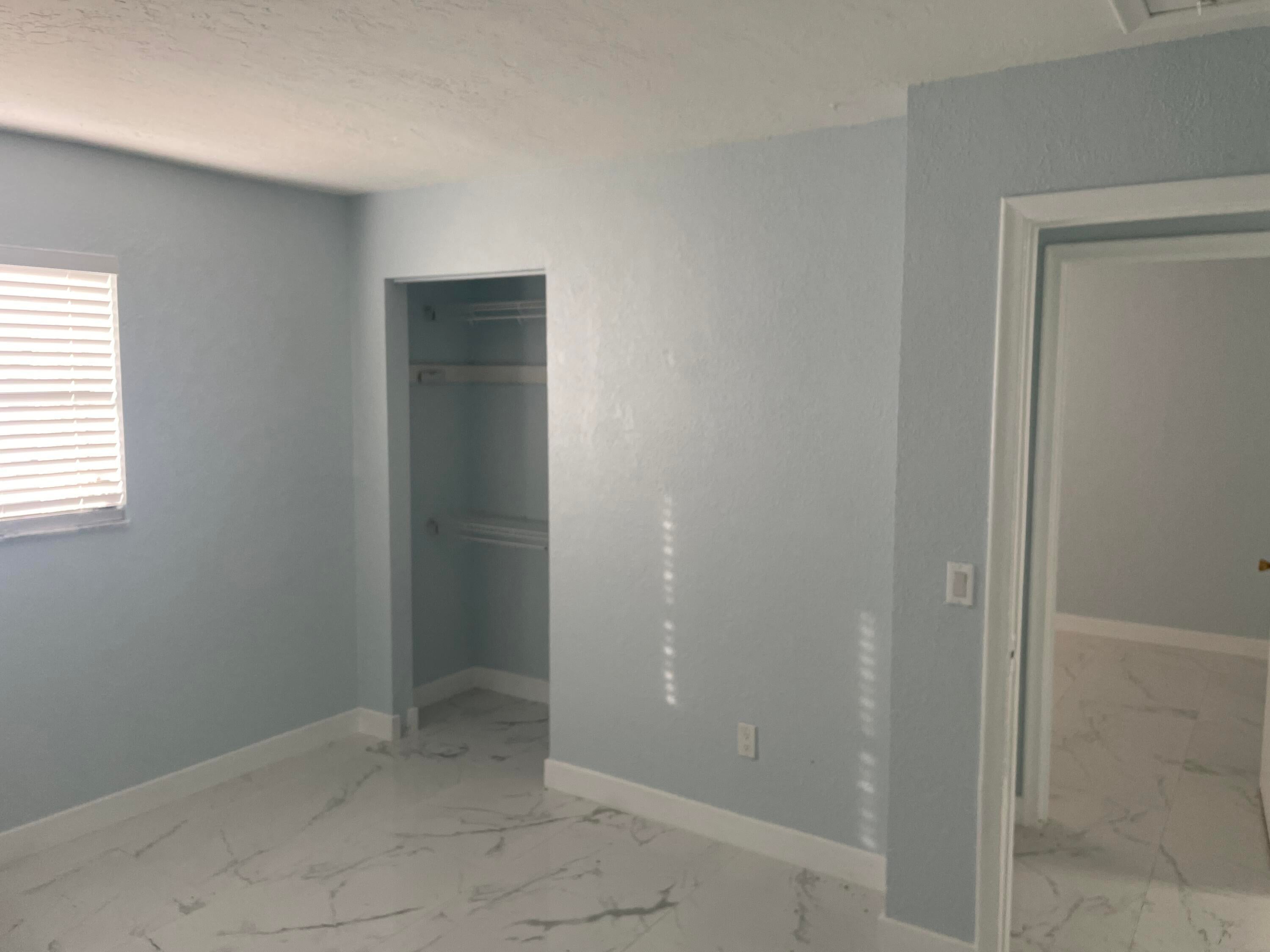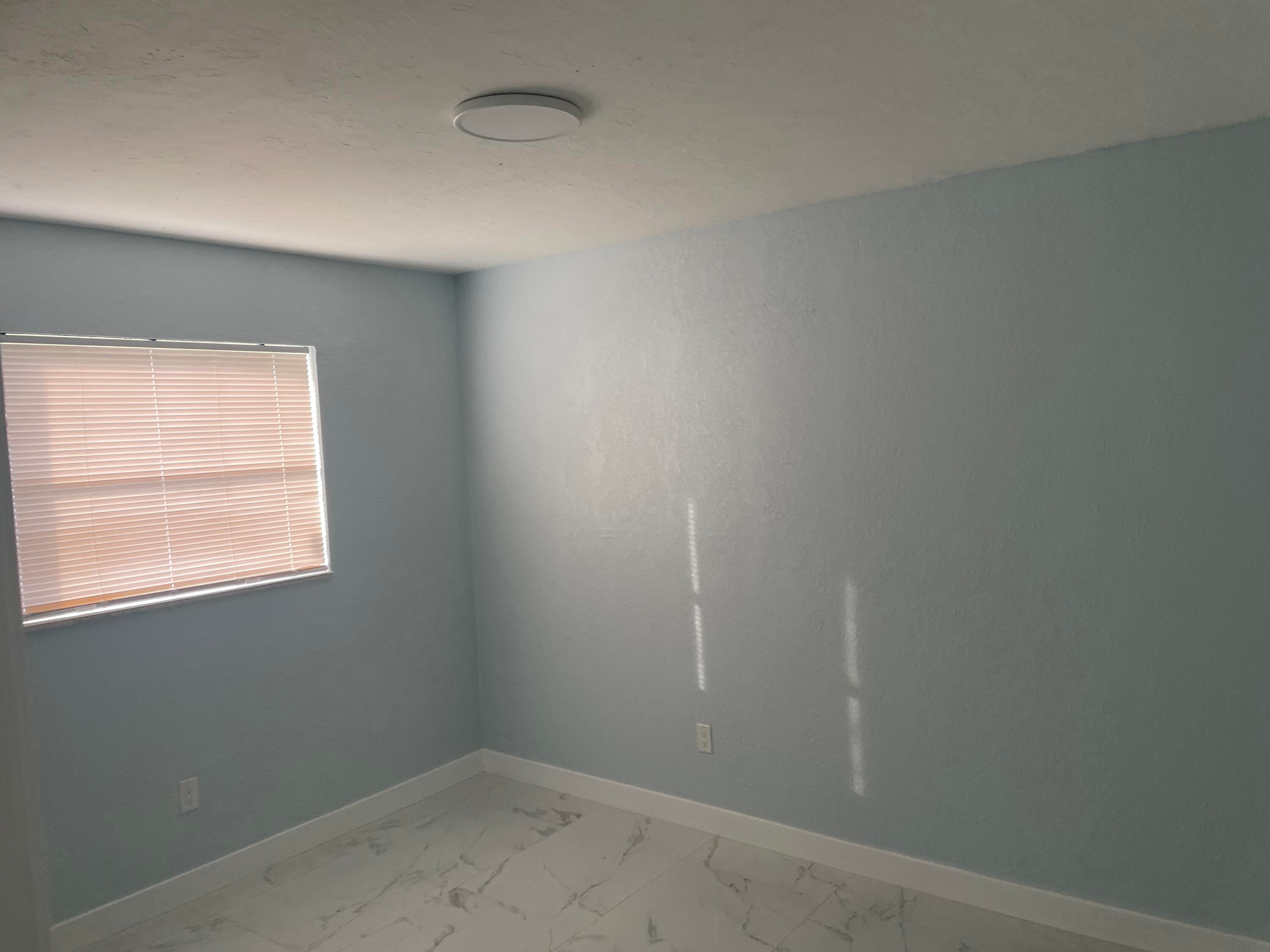 Updated 2/1 with tile floors throughout. Unit has private fenced patio. See pictures of modern bath and kitchen. Laundry room located just outside sliding doors. Parking out front apartment is in rear.