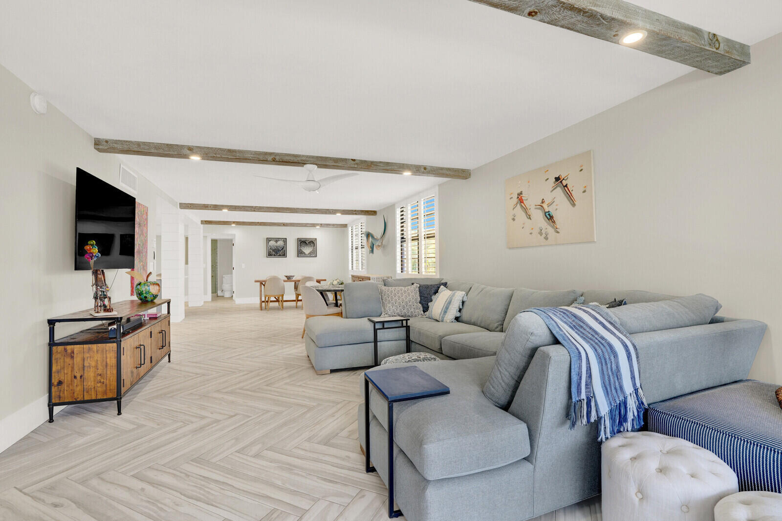 Enjoy ocean views from this fully renovated 3-bedroom, corner unit condo in the heart of Juno Beach. The open, modern floor plan highlights a stunning custom kitchen with a large island, quartz countertops and stainless steel appliances, complemented by herringbone wood-look tile flooring throughout. Spa-inspired bathrooms feature frameless glass showers and premium finishes. Completely remodeled -- no renovations or projects, just move in and enjoy the beach lifestyle. The monthly fee includes building insurance, exterior maintenance, cable, water and reserves, offering exceptional value and a rare opportunity to secure a beautifully updated unit at a strong price point within the building. Walk to the sand, pier, restaurants and cafes -- the best of Juno Beach is right outside your door.
