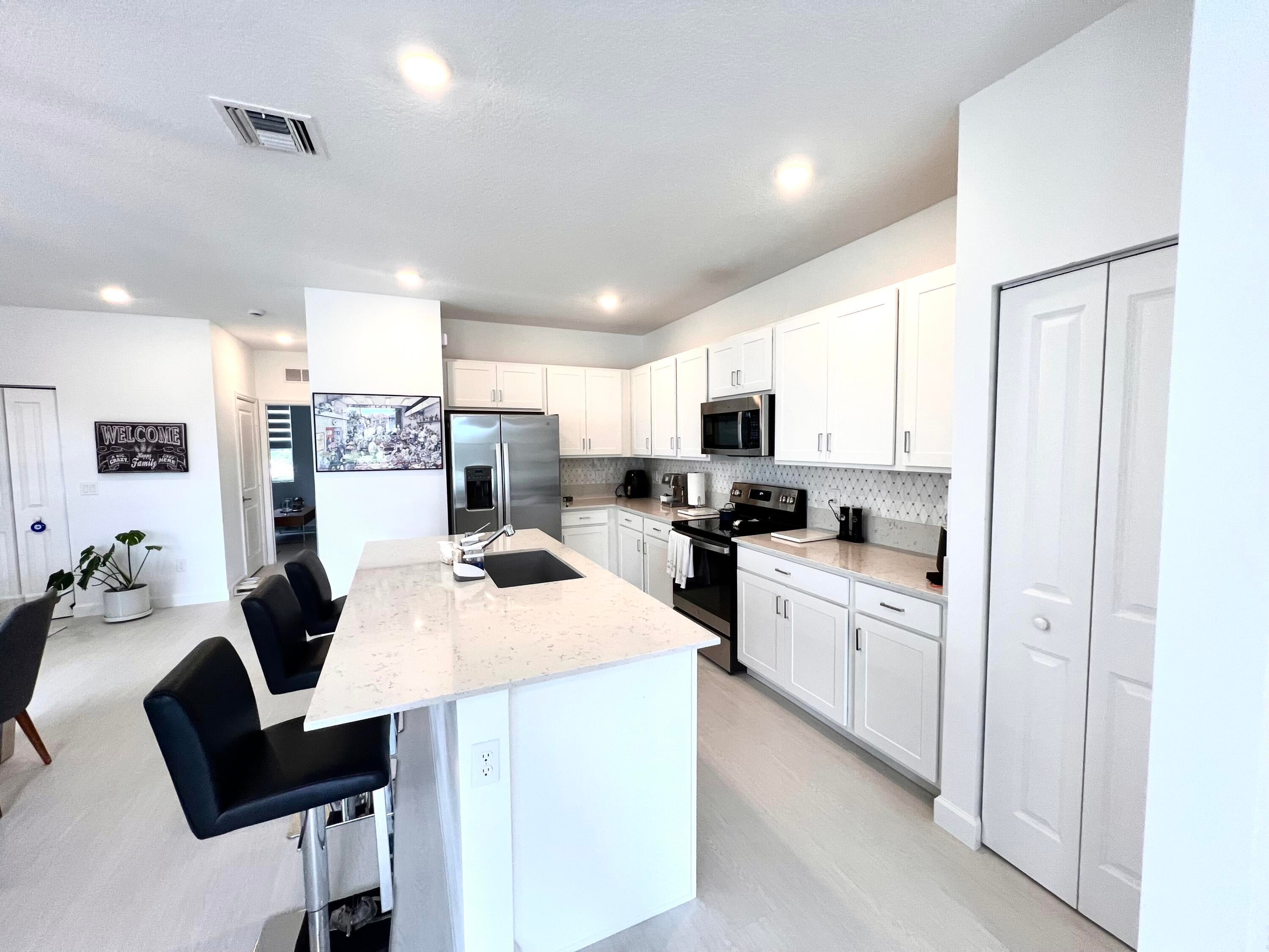 Welcome home to this stunning new construction townhouse, where modern design meets effortless living! Featuring 3 spacious bedrooms and 2.5 baths, this home offers the perfect blend of comfort and style. Step inside to discover an open concept floor plan with brand new flooring throughout, creating a bright and inviting atmosphere ideal for both entertaining and everyday living. Enjoy a sleek entertainment bar, perfect for hosting friends and family, and take in the breathtaking lake views right from your own backyard. Step outdoors on your extended paved patio area, perfect for relaxing, dining al fresco, or simply taking in the serene waterfront scenery. This home includes impact windows and doors, a 1 car garage, and access to a gated community with a sparkling pool.
