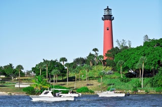 To mark the reef lying off the Jupiter Inlet, Congress in 1853 appropriated $35,000 to construct a lighthouse. At the top of the Jupiter Lighthouse, you can see the Loxahatchee River.