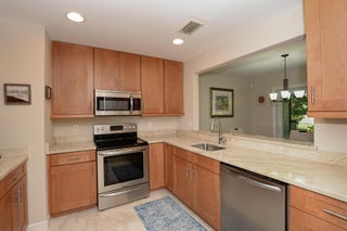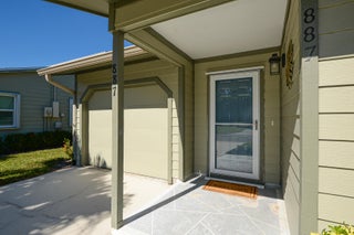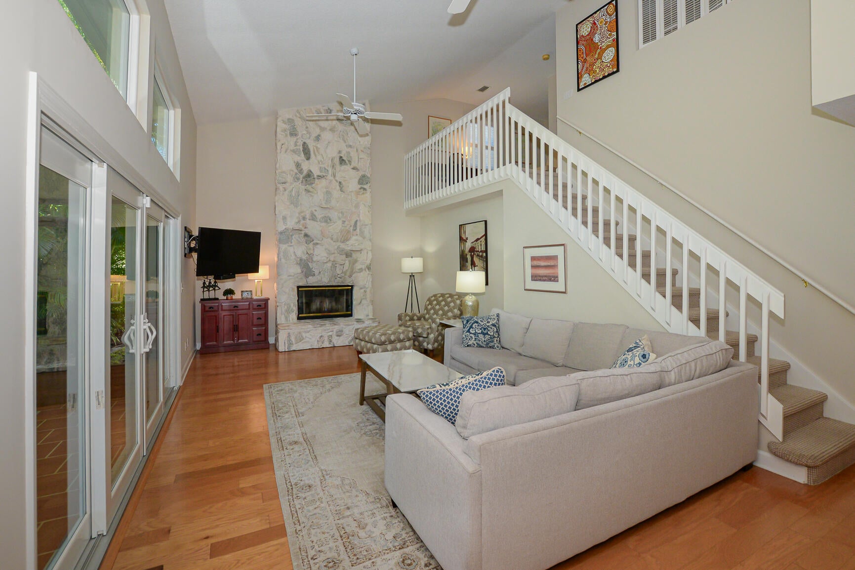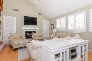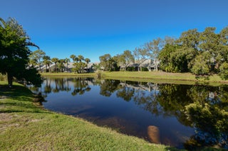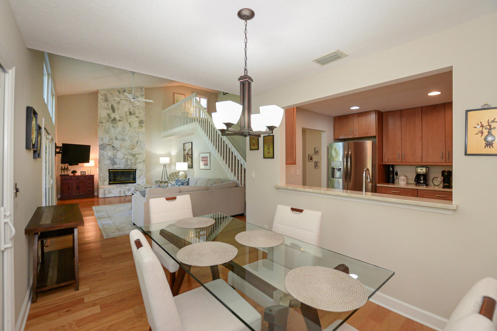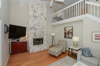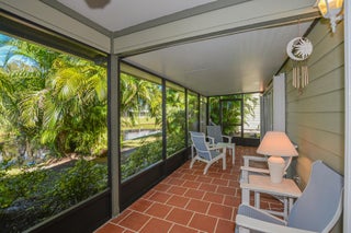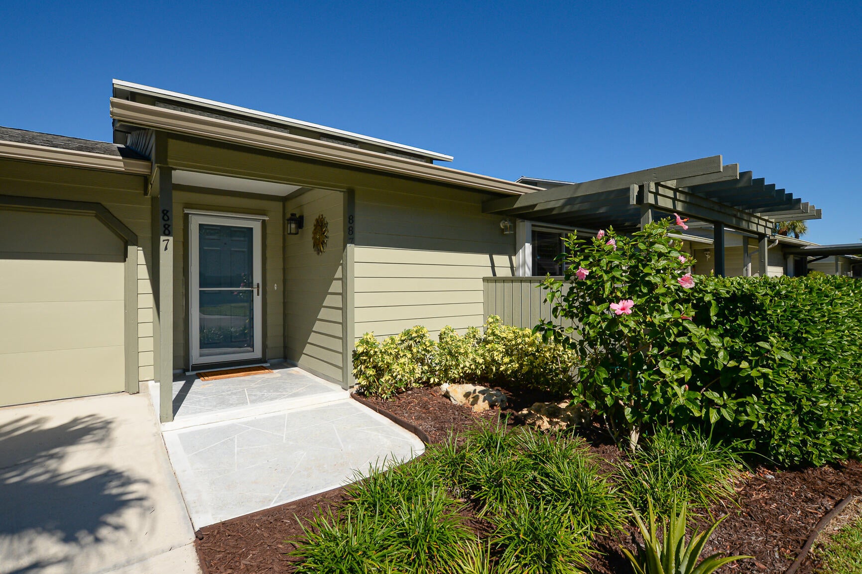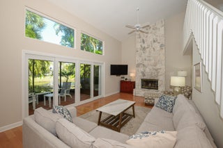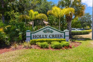 Fabulous home in desirable Holly Creek close to beaches, shopping, restaurants & so much more! Features RE-DONE beauty with front porch entrance, Hurricane Windows, 3 BR's, 3 BA's, loft & 1 Car Garage. Updated Kitchen includes granite counter tops, stainless steel appliances & opening to dining area. Spacious living room boasts stunning wood burning fireplace, vaulted ceilings & charm. Master suite downstairs includes lovely laminate flooring, atrium off the sliding glass doors, Plantation Shutters, walk-in closet with built-in's & updated Master bath with marble counters, dual sinks & shower. Bedroom 2 also downstairs & Bath 2. Upstairs you will find private loft area perfect for your office space or private sitting area, BR 3 & Bath. Screen enclosed Lanai overlooking tranquil lake view.HOA includes: Pool, Tennis, Pickleball, library, recreation facility, lawn maintenance, cable & internet. Roof: 2013, A/C: 2024 & Water Heater 2019. Hurricane Windows & shutters for doors.