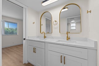 Welcome to this beautifully remodeled 2bed/1bath first floor CORNER unit in beautiful Lake Clarke Gardens. EVERYTHING IS NEW! New kitchen with quartz countertops backsplash waterfall and bar, new appliances, updated bathrooms with custom made vanities, new waterproof vinyl flooring throughout, new AC, new water heater. Convenient parking spot right outside your front door! Enjoy the greenery and privacy from your enclosed screen patio. The 55+ community of Lake Clarke Gardens is just a few miles from the beach, Lake Worth downtown, restaurants and shopping centers. The community has 2 pools, sauna, updated gym, BBQ area, billiards room, theater, library, bocce ball, and a bus to local shopping.
