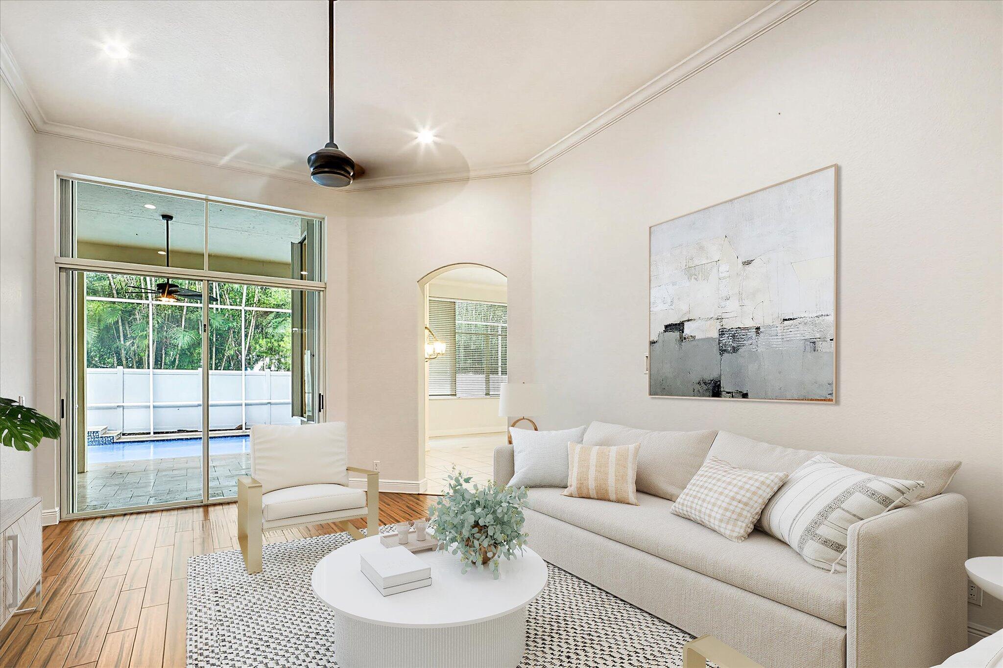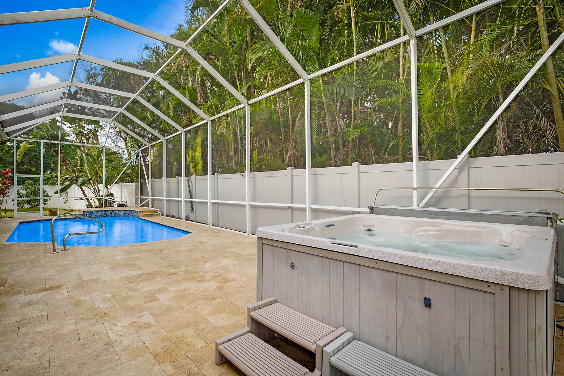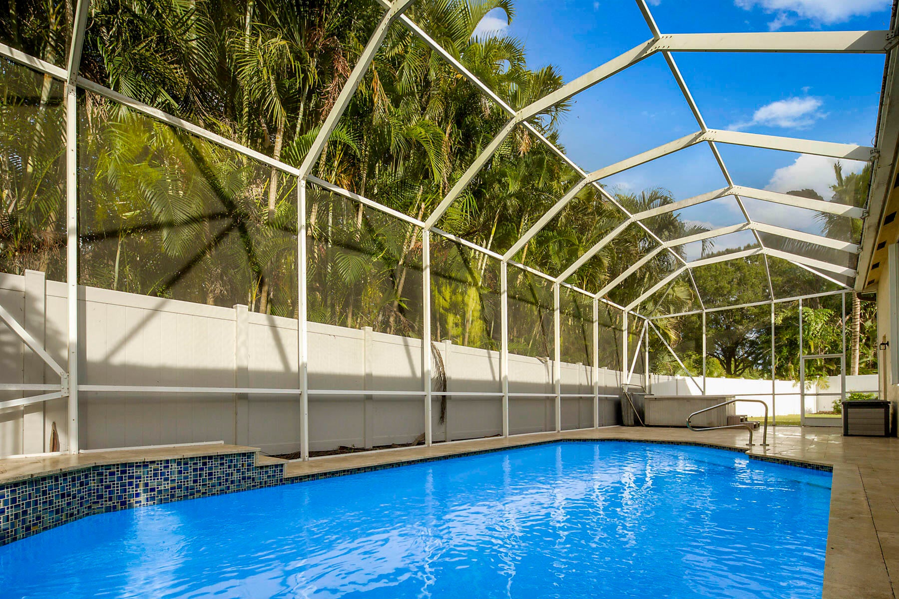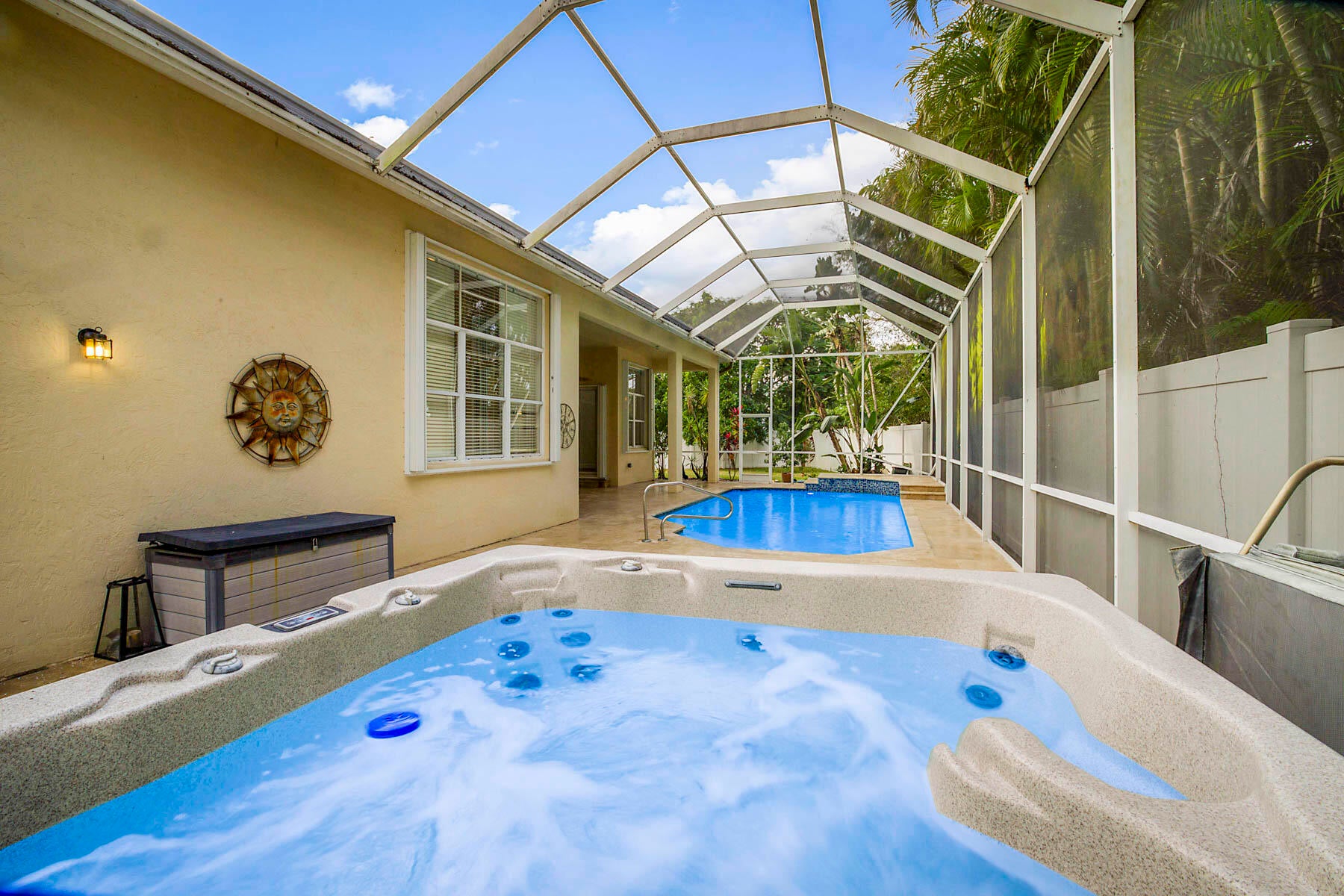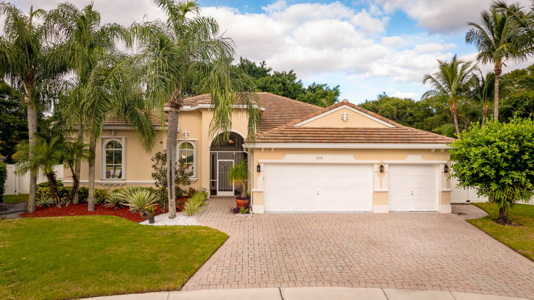 Welcome to 6973 Finamore Circle -- a beautiful single-story home set on a quarter acre pie-shaped cul-de-sac lot in the highly desirable neighborhood of Journeys End. Designed for comfort, privacy, and effortless indoor-outdoor living, this 5-bedroom residence (plus a private sitting room off the primary suite) offers 3 full bathrooms, a triple-split floor plan, and approximately 3,000 square feet of thoughtfully appointed space.Inside, you're greeted by soaring 12-foot ceilings, elegant tray ceilings, and crown molding throughout, all complemented by bamboo floors, fresh paint, new fixtures, and an abundance of natural light. The renovated kitchen shines with quartz countertops, glass backsplash, a smart refrigerator, a never-used double oven, and exceptional storage.A huge laundry room provides excellent functionality and additional storage. The primary suite is a serene retreat with its own sitting area overlooking the pool and direct access to the patio. Two of the three bathrooms have been tastefully updated, and the convenient cabana bath leads directly outside. Your private Florida oasis awaits outdoors. The oversized screened-in patio features travertine stone floors, a gorgeous pool perfectly centered between two expansive side backyards, an above-ground hot tub, and a spacious covered area designed for lounging, dining, and entertaining. The backyard is fully fenced, offering peace of mind, and the home is equipped with gutters for added protection. The unique pie-shaped lot provides exceptional privacy and space to enjoy. Additional features include: New 2022 roof and full-home accordion shutters for peace of mind and significantly lower homeowners insurance 2024 AC Unit (the other unit is 2014) 2.5-car garage with cabinetry and space for a golf cart or motorcycle Fresh interior paint and updated smoke alarms Cul-de-sac location, walking distance to the clubhouse and sports courts Living in Journeys End: This premier community offers a 24-hour manned gate, continuous security patrol, and an impressive lineup of amenities including an oversized resort-style beach-entry pool, basketball, pickleball and tennis courts, weight and cardio rooms, and a beautiful clubhouse with social and entertaining spaces. The community is zoned for all A-rated schools, with recreation facilities, shopping, and restaurants just minutes away. HOA dues include access to all amenities plus cable, and high-speed internet, making this an incredible value. Perfect for active buyers seeking space, style, amenities, and peace of mind, this move-in-ready home delivers the very best of South Florida living.