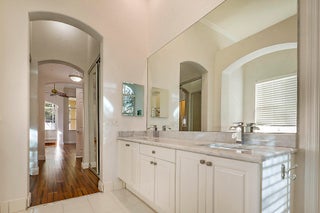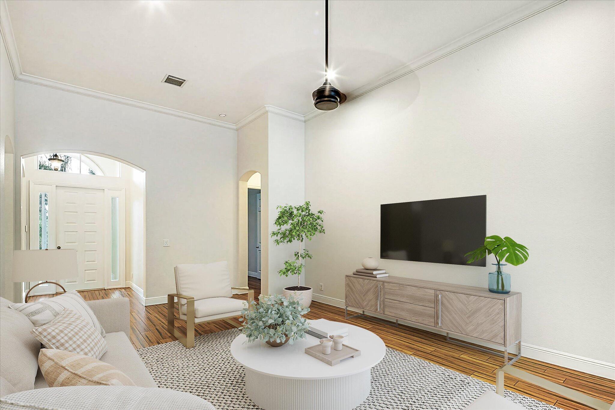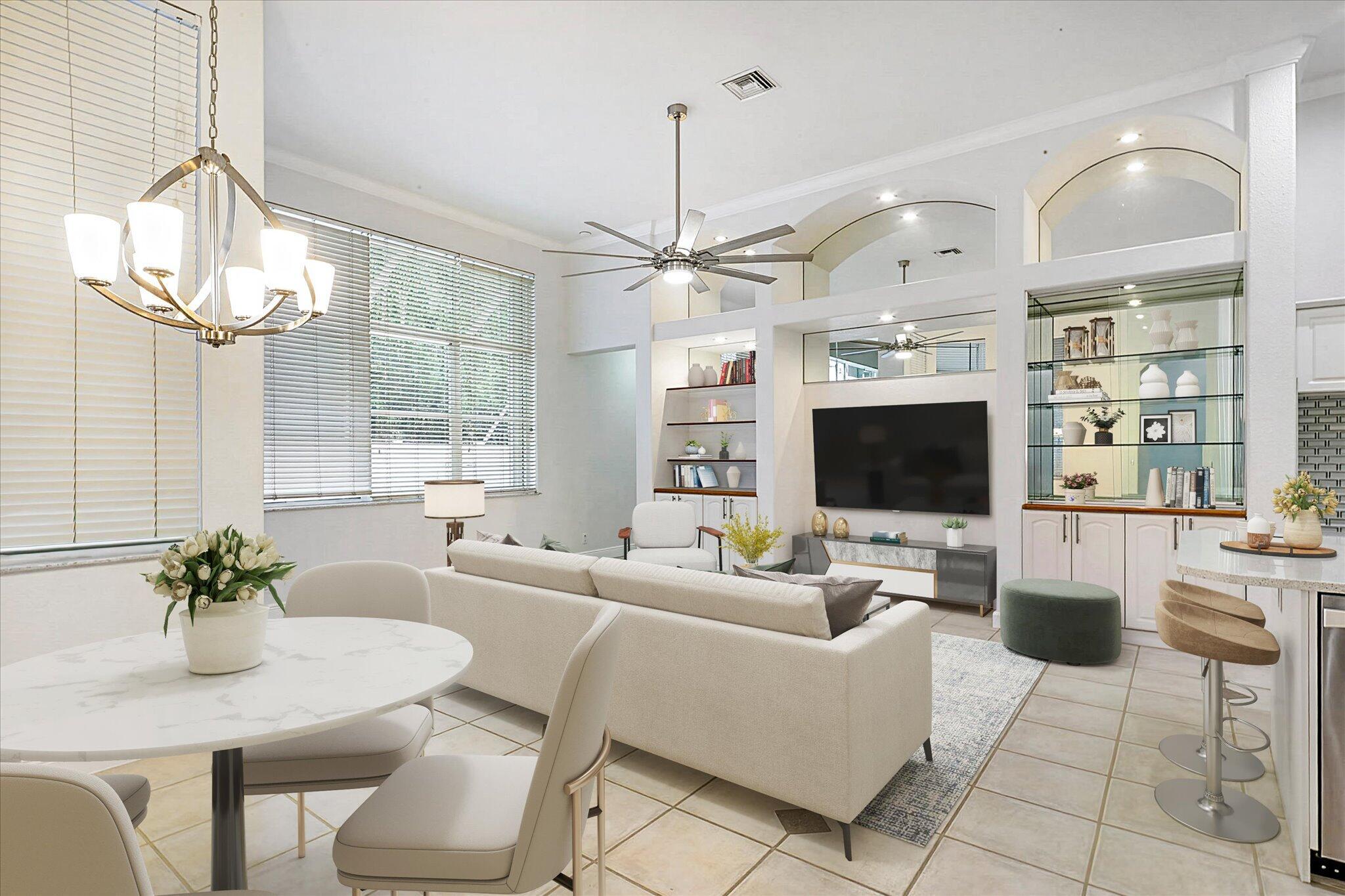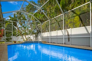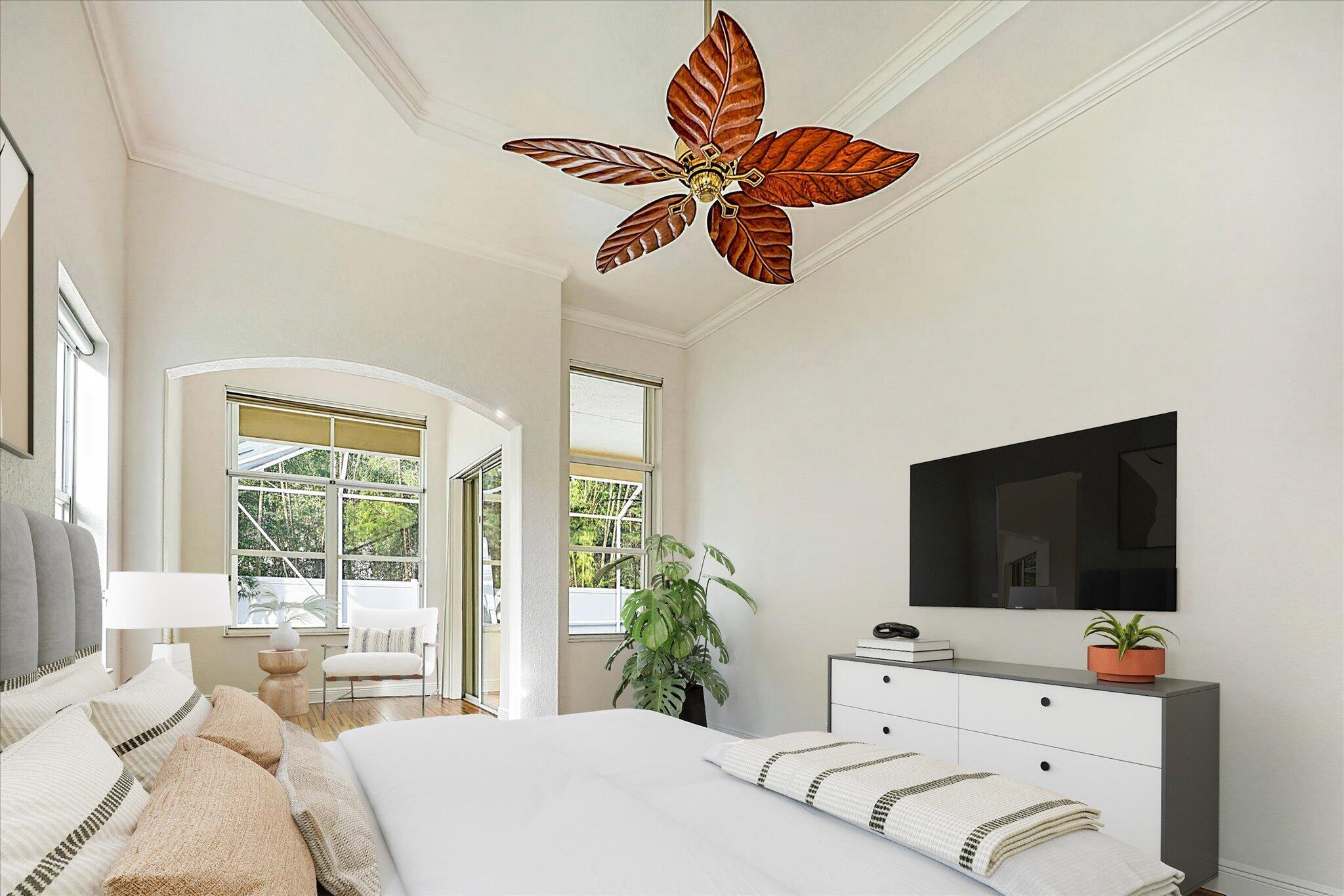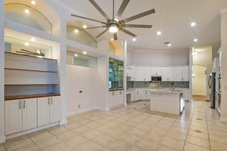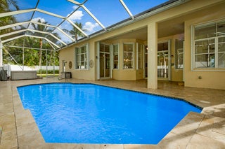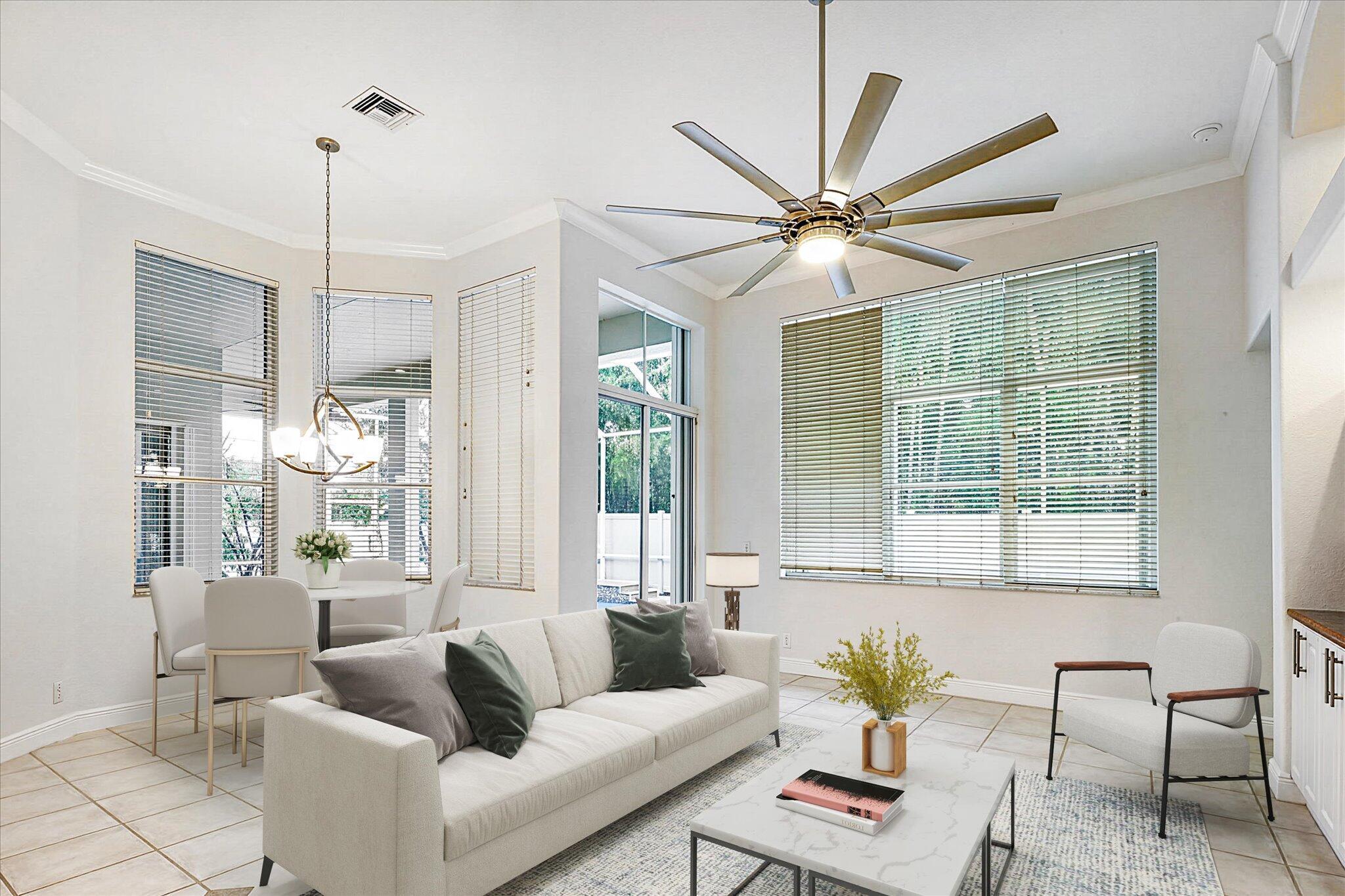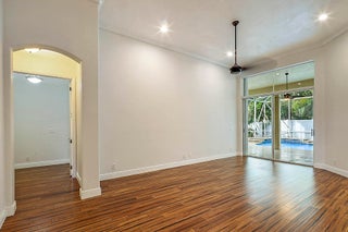 Welcome to 6973 Finamore Circle -- a beautiful single-story home set on a quarter acre pie-shaped cul-de-sac lot in the highly desirable neighborhood of Journeys End. Designed for comfort, privacy, and effortless indoor-outdoor living, this 5-bedroom residence (plus a private sitting room off the primary suite) offers 3 full bathrooms, a triple-split floor plan, and approximately 3,000 square feet of thoughtfully appointed space.Inside, you're greeted by soaring 12-foot ceilings, elegant tray ceilings, and crown molding throughout, all complemented by bamboo floors, fresh paint, new fixtures, and an abundance of natural light. The renovated kitchen shines with quartz countertops, glass backsplash, a smart refrigerator, a never-used double oven, and exceptional storage.A huge laundry room provides excellent functionality and additional storage. The primary suite is a serene retreat with its own sitting area overlooking the pool and direct access to the patio. Two of the three bathrooms have been tastefully updated, and the convenient cabana bath leads directly outside. Your private Florida oasis awaits outdoors. The oversized screened-in patio features travertine stone floors, a gorgeous pool perfectly centered between two expansive side backyards, an above-ground hot tub, and a spacious covered area designed for lounging, dining, and entertaining. The backyard is fully fenced, offering peace of mind, and the home is equipped with gutters for added protection. The unique pie-shaped lot provides exceptional privacy and space to enjoy. Additional features include: New 2022 roof and full-home accordion shutters for peace of mind and significantly lower homeowners insurance 2024 AC Unit (the other unit is 2014) 2.5-car garage with cabinetry and space for a golf cart or motorcycle Fresh interior paint and updated smoke alarms Cul-de-sac location, walking distance to the clubhouse and sports courts Living in Journeys End: This premier community offers a 24-hour manned gate, continuous security patrol, and an impressive lineup of amenities including an oversized resort-style beach-entry pool, basketball, pickleball and tennis courts, weight and cardio rooms, and a beautiful clubhouse with social and entertaining spaces. The community is zoned for all A-rated schools, with recreation facilities, shopping, and restaurants just minutes away. HOA dues include access to all amenities plus cable, and high-speed internet, making this an incredible value. Perfect for active buyers seeking space, style, amenities, and peace of mind, this move-in-ready home delivers the very best of South Florida living.