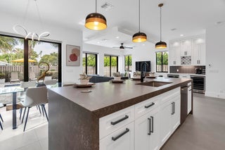 Contemporary coastal gem from an award-winning builder. Over 2500 square feet of living space with 4 bedrooms and 3.5 baths. The open floor plan with soaring ceilings is flooded with natural light and centered around a chef's kitchen, with a living and dining room that fit the space beautifully. Three pairs of oversized sliding doors allow for the seamless transition outdoors to enjoy a quiet morning, dip in the pool, or for hosting a gathering. Upstairs the expansive primary suite greets you with its own balcony, spa bath and custom closets. Additional bedrooms are big, bright and perfect for guests or your growing family. Additional upstairs space is suited for a home gym, den or office. Modern CBS construction with impact glass and a seamed aluminum roof means peace of mind.
