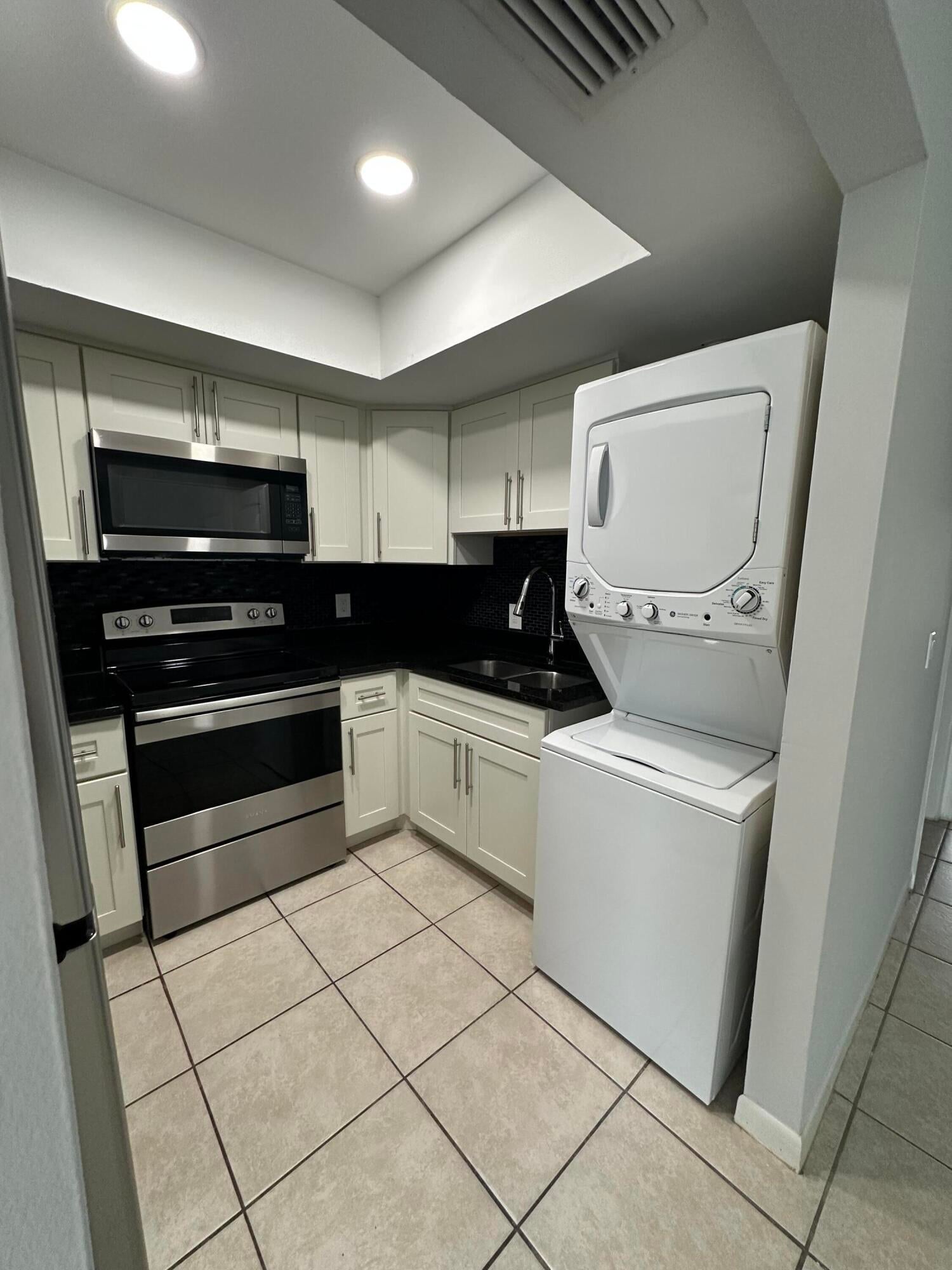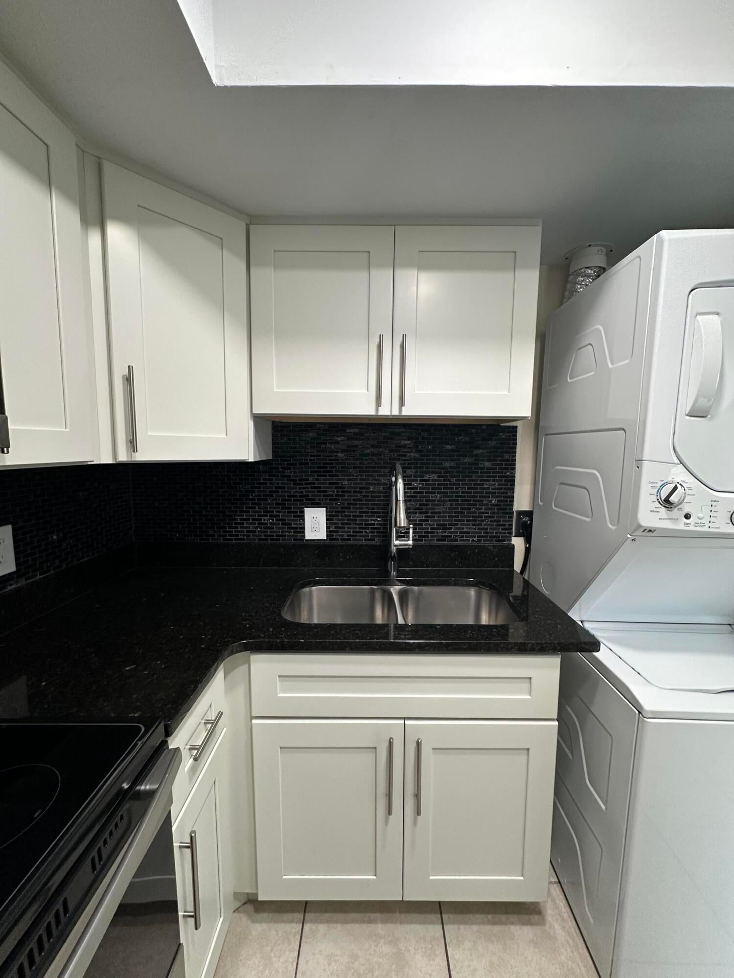 Spacious and bright First floor one bedroom apartment, fully remodeled with Tile floors throughout the apartment. Includes stackable washer/dryer inside unit. Nice kitchen granite countertops black glass backsplash and new stainless-steel appliances. Granite bathroom counter. window blinds and fans. Water and Sewer included in Rent. Plenty of parking spaces available.