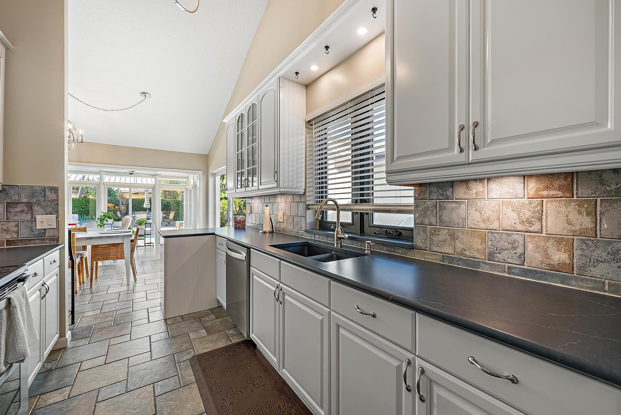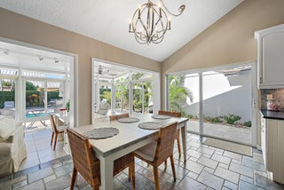 Nestled in the desirable coastal community of The Ridge at the Bluffs, this beautifully updated three-bedroom, two-bath home combines relaxed Florida living with timeless comfort and style. The light-filled, open floor plan showcases vaulted ceilings and spacious living areas that flow seamlessly to the gorgeous pool and patio area, creating an effortless indoor-outdoor lifestyle.The kitchen features stainless steel appliances, white cabinetry, and a breakfast area overlooking the pool -- perfect for entertaining. The adjoining great room offers volume ceilings, a neutral palette, and expansive space that opens to the sunroom and outdoor living area. A versatile Florida room, framed in glass, serves as a bright second lounge or home office, blending indoor comfort with poolside views.The primary suite provides a tranquil retreat with wood flooring, generous closet space, and a fully remodeled spa bath featuring dual vanities, marble-style tile, and a frameless glass shower. Guest accommodations include two inviting bedrooms one a loft-style suite with soaring ceilings, ideal for family, guests, or a work-from-home setup. Additional highlights include a newly renovated guest bath, a dedicated laundry room with custom cabinetry, and an attached two-car garage. Step outside to enjoy the heated saltwater pool and spa, surrounded by tropical landscaping and travertine decking a private oasis designed for year-round enjoyment. Residents of The Ridge at the Bluffs enjoy resort-style amenities including a heated community pool, tennis and pickleball courts, basketball courts, and a clubhouse all within close proximity to the home. Ideally located just minutes from Juno Beach, Pelican Lake, premier golf clubs, and fine dining, this home embodies the very best of coastal living in one of Jupiter's most sought-after enclaves.
