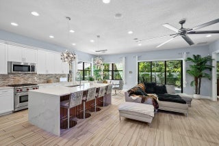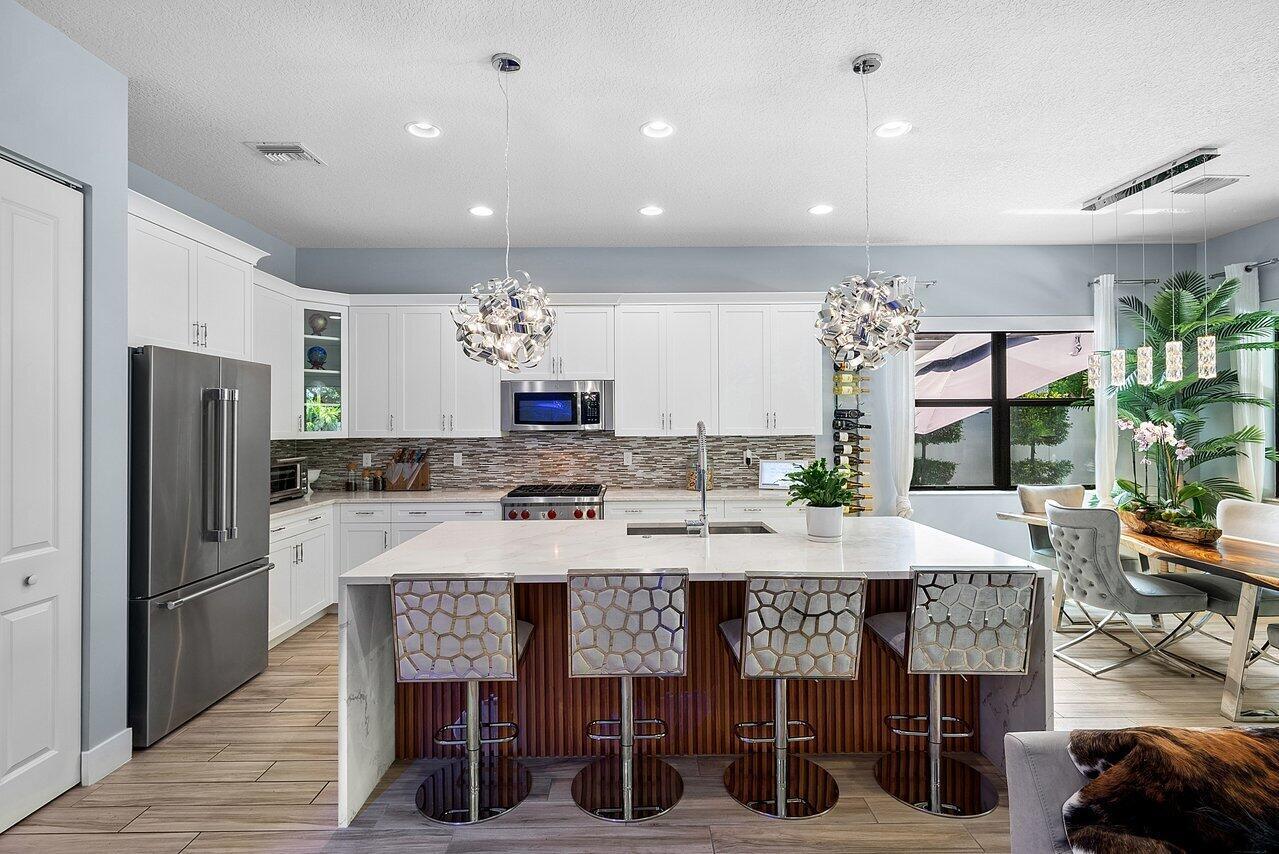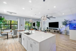 Beautifully upgraded 3BR/2BA Lago model built in 2019, featuring a modern open floorplan and a chef's kitchen with quartz counters, large entertaining island, upgraded appliances, and a 2024 Wolf range. Enjoy a private backyard with a saltwater resort-style pool with a heater and chiller, new marble deck (2024), T&G patio ceiling, K9 turf, and upgraded landscaping with Kichler lighting. Smart-home upgrades include a full-home Generac generator (2024), Mitsubishi garage mini-split (2024), SONOS 8-zone system, Lutron automatic shades, Big Ass fans and new Kohler toilets (2024). Villamar at Toscana Isles community Community features clubhouse, gym, pool, party room, tennis, basketball & tot lot.