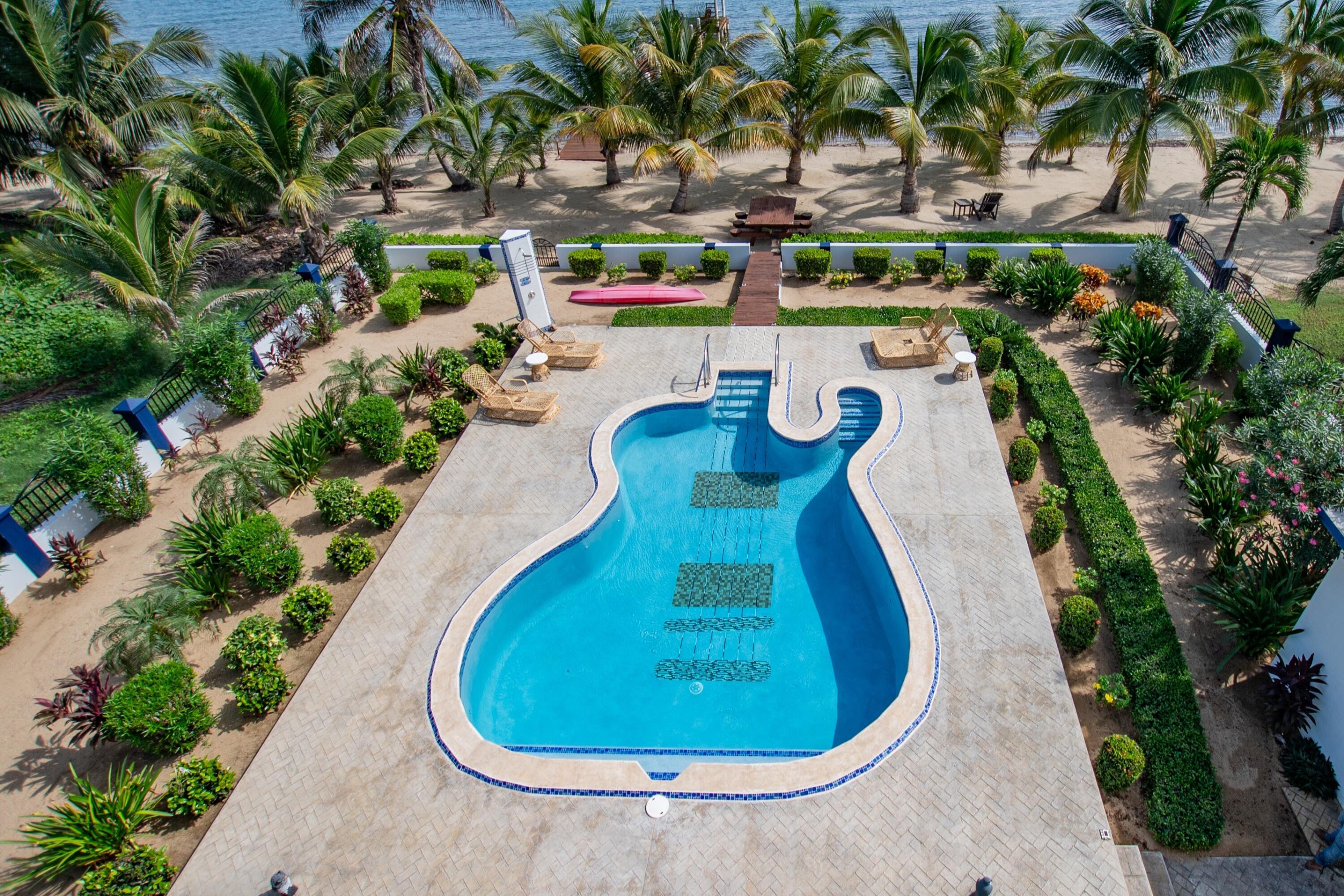A rare beachfront estate with private marina in Hopkins Village, Belize. The property functions as a private residence, luxury rental retreat, or income producing compound perfect for weddings or private events. This fully furnished 7 bed, 8 bath compound includes multiple individual suites, direct Caribbean beachfront, private marina with 2 boats on lifts, a main residence, two boathouse suites, a caretaker's suite, 360 Degree rooftop terrace, and a guitar shaped pool. The estate is fully furnished and designed for flexible use whether it be a private residence or a luxury rental. The property comes fully furnished and also includes 2 Boats, a Jeep, and water toys.