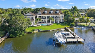 Discover this magnificent custom estate on the Loxahatchee River, featuring stunning waterfront views and breathtaking sunsets. With 7,900 sq. ft. of luxurious living space across three levels, this home boasts 6 bedrooms, 7.1 baths, and a private guest suite, complete with an elevator for your convenience. Step into the grand foyer with a floating staircase, leading to elegant formal living and dining rooms, a gourmet kitchen with a butler's pantry, and a family room with a stylish bar. Enjoy leisure time in the billiard room or serene moments in the study/library. This estate showcases exceptional craftsmanship, including an exquisite remodel of the primary suite and bath, featuring an opulent custom dressing suite. The newly updated garage includes a gymnasium with water views,and the third level offers ample space for various uses, making it a versatile part of the home. For added comfort and versatility, the estate includes a generously sized attached guest home with a private entrance, boasting its own kitchen, living room, bedroom, and bath. Ideal for boat enthusiasts, the property boasts a private dock equipped with a 24,000-pound boat lift, allowing for easy access to the water. It's just a short ride to the Jupiter Inlet, where you can enjoy excellent fishing and dining at several top-notch restaurants in the area. 2026 Slate Roof has been installed. Seize the opportunity to own this waterfront paradise!