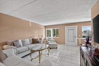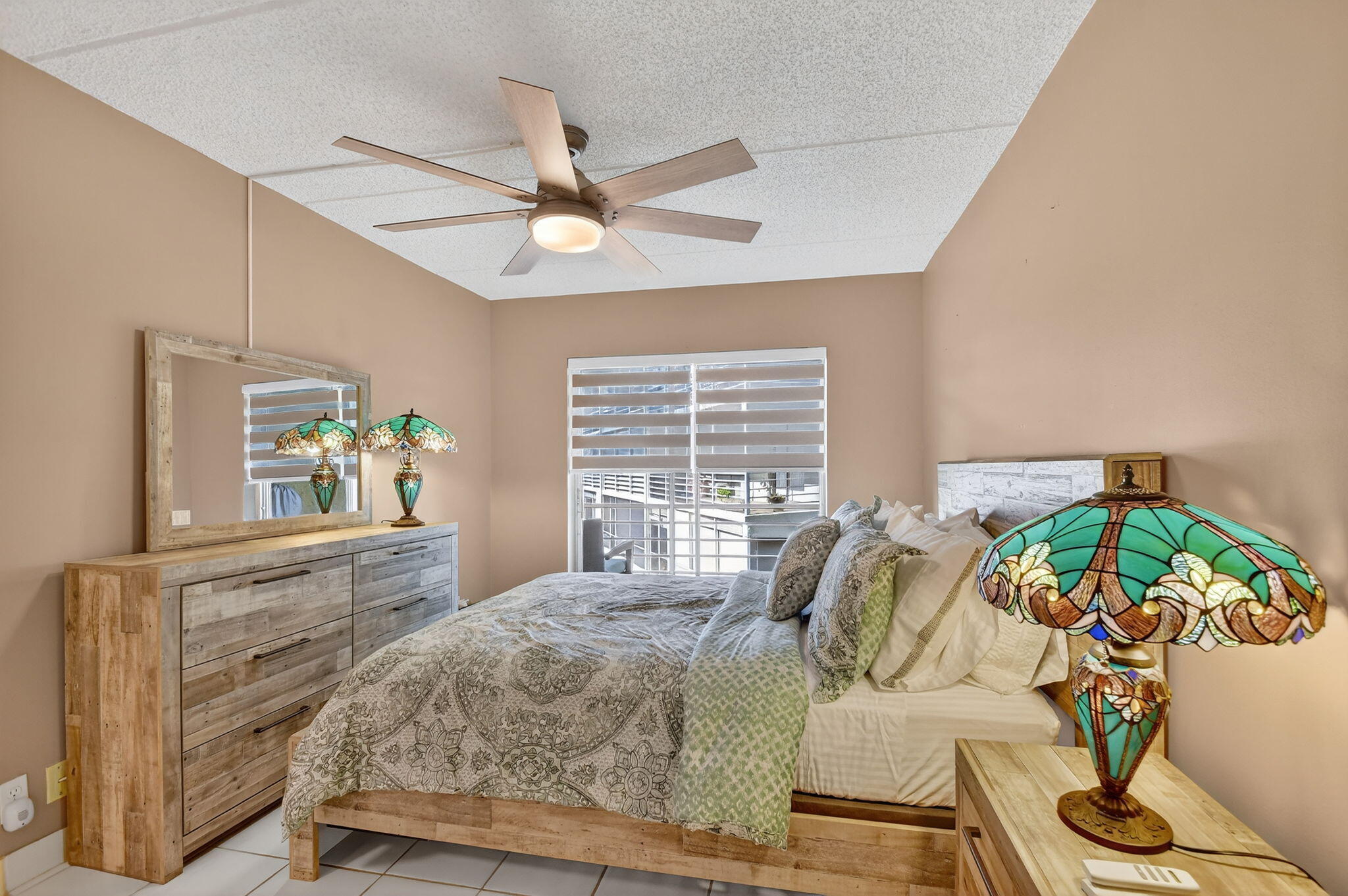 Beautifully updated 2-bed, 1.5-bath condo in an active 55+ community. Tile flooring throughout, designer fans, and recessed kitchen lighting create a bright, welcoming feel. Both bedrooms feature custom electric blinds and sliding glass doors leading to a screened balcony. The primary suite offers a spacious walk-in closet by Closets by Design, with a second custom closet for added storage. Updated bathrooms include a modern walk-in shower, and the kitchen has a brand-new stove. Move-in ready and designed for easy Florida living! A/C 2023