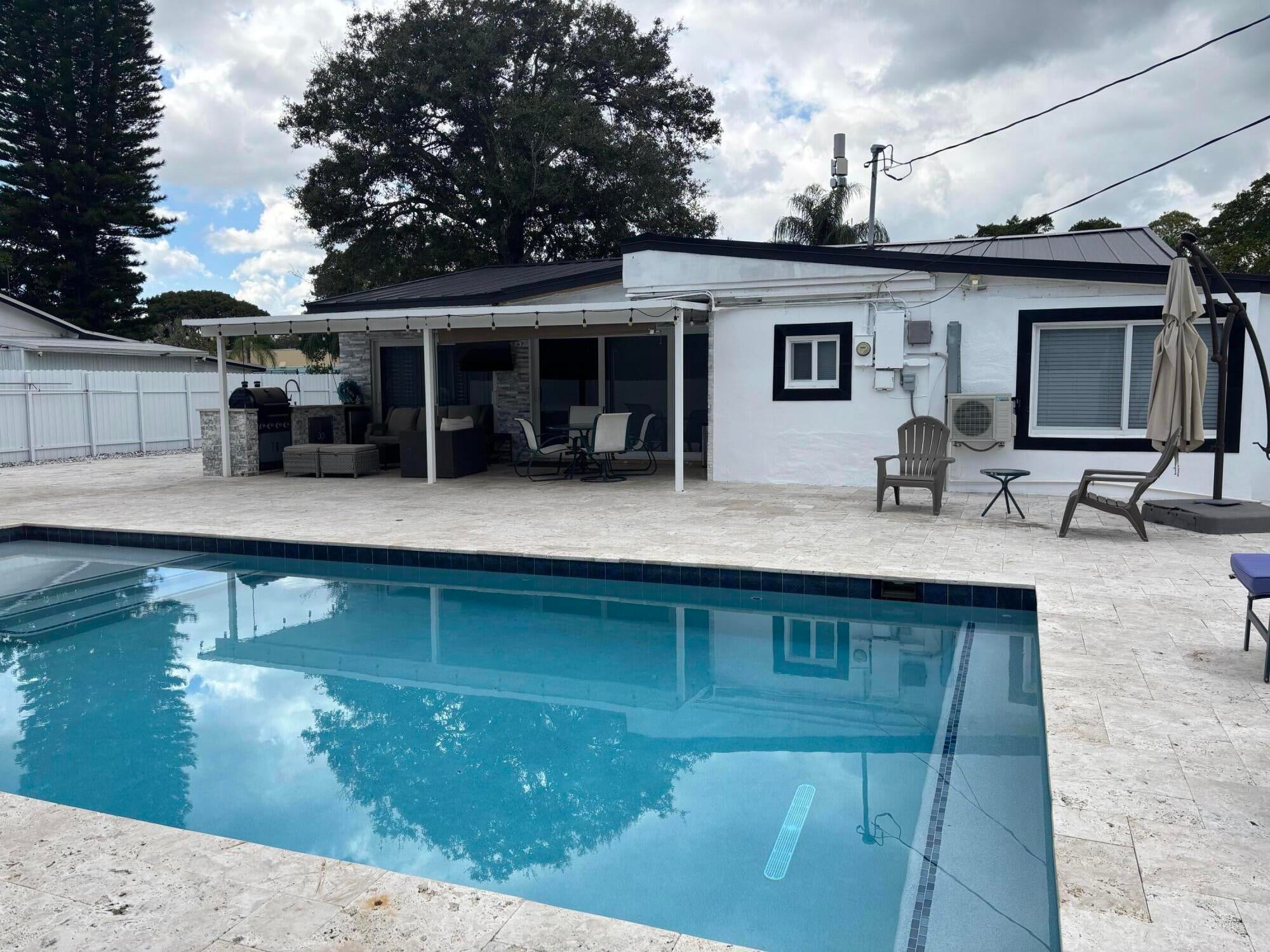 : This Single-family home has it all. Featuring 3 bedrooms, 2 bathrooms, Beautifull pool, like resort style, new Metallic roof and jacuzzi heated, big patio kitchen, and carport. Laundry room. Huge backyard and room on both sides of the house for a boat, or Rv. No HOA located in the beautiful community of Palm Springs close to great schools, parks, 15 minutes to the beach.